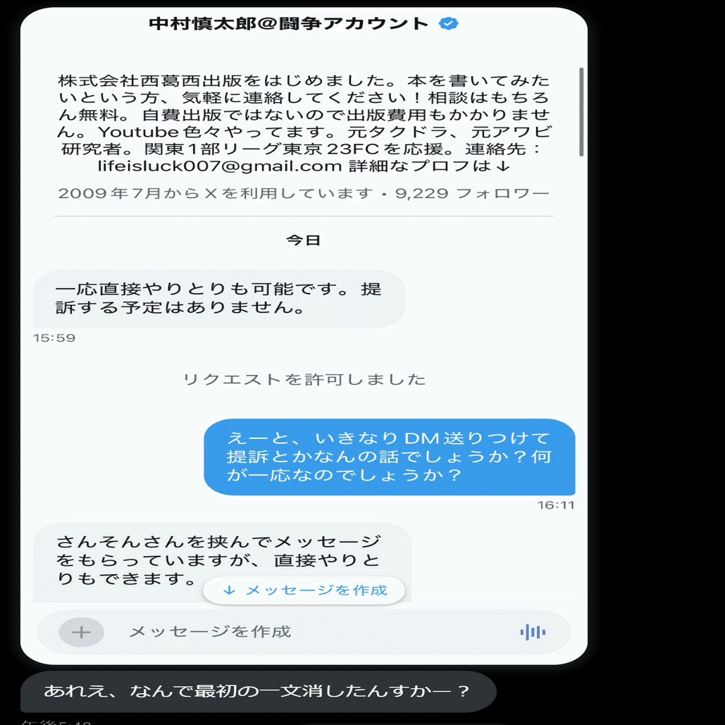 中村:提訴されることは、まずは対話で避けるべきです。なので、何かあれば、以下までメッセージをしてくれるようにお伝え下さい。