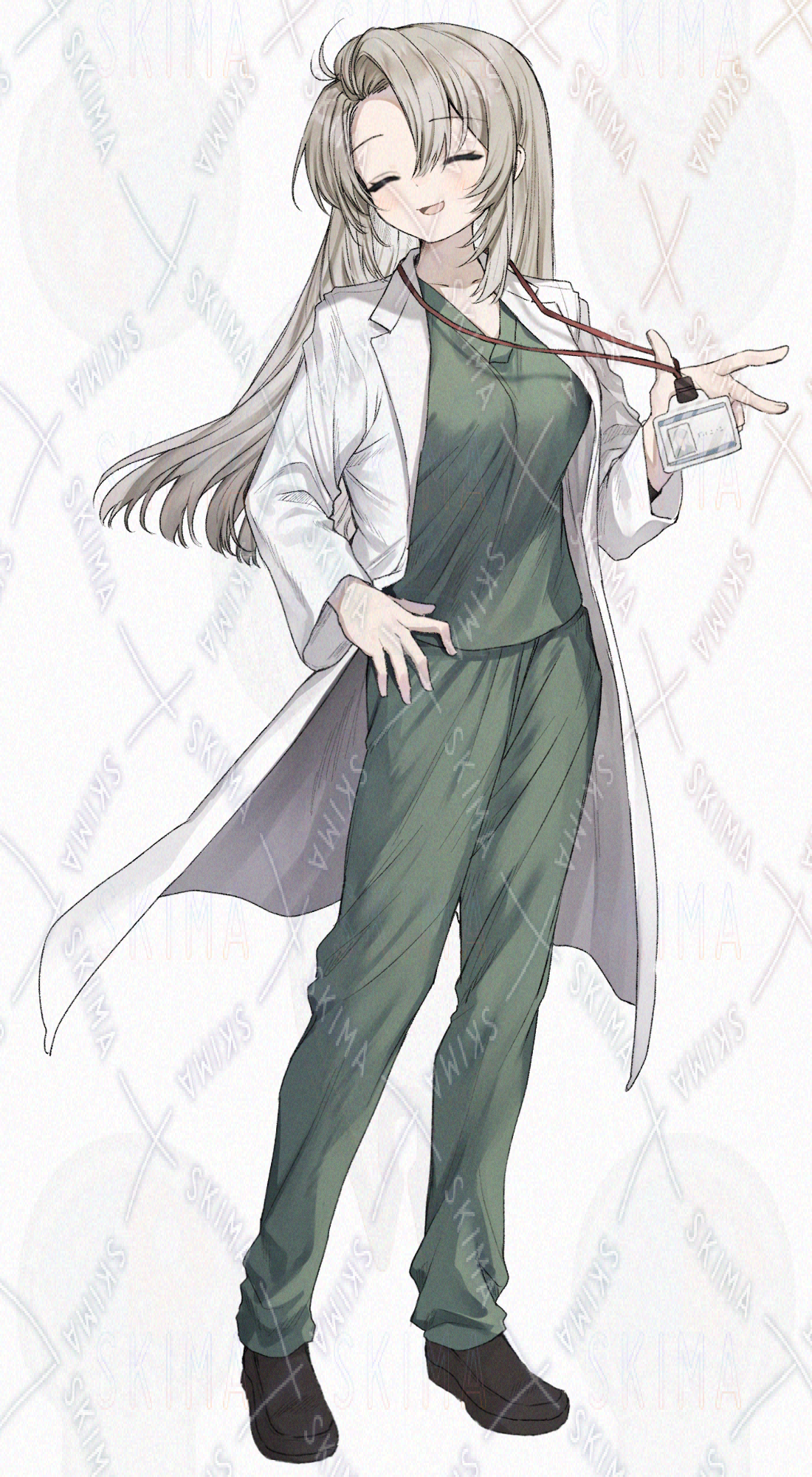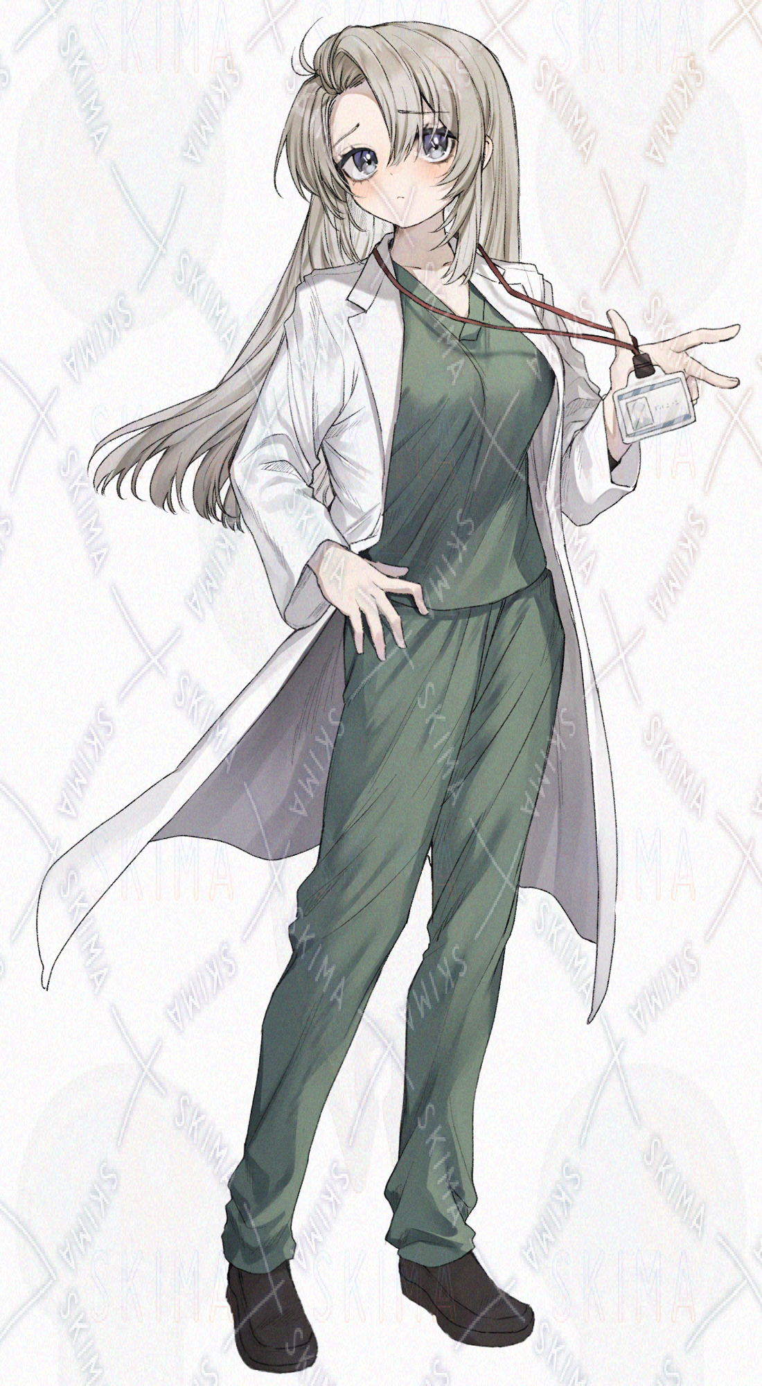 緑のスクラブと白衣を着た医者の女性・女の子です。キャラ設定はご自由に。