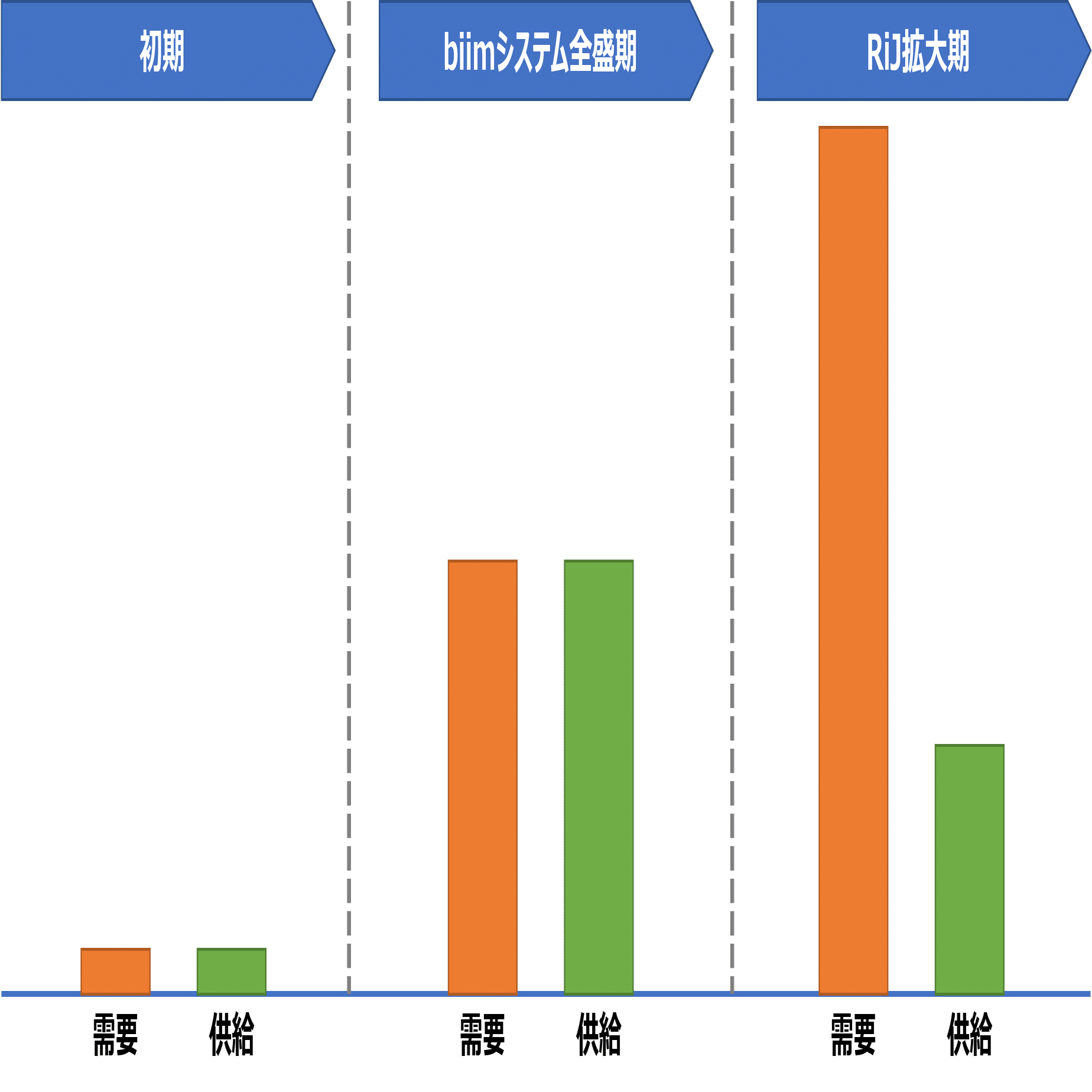 初めに図を示すと、RTAの需要と供給は、以下のような変遷を辿っているように筆者は思います。