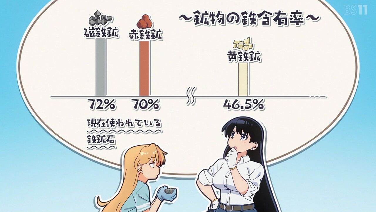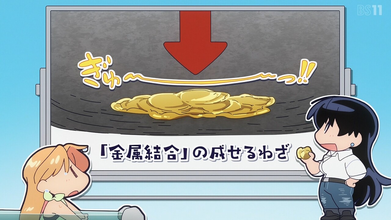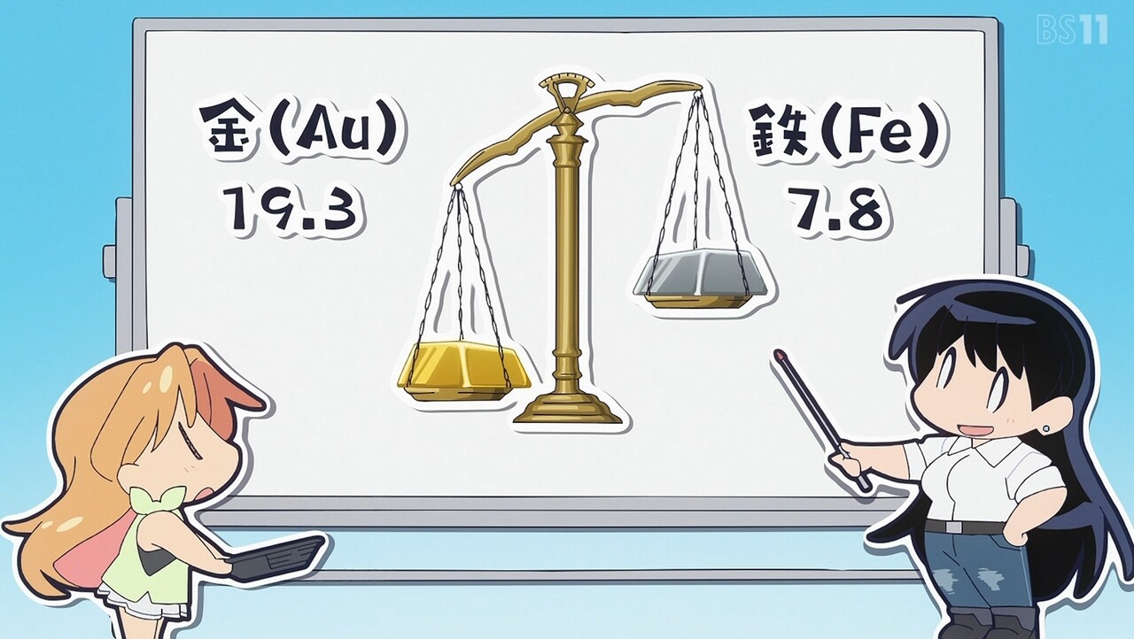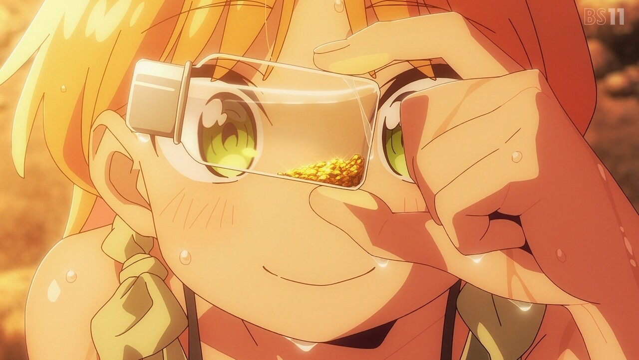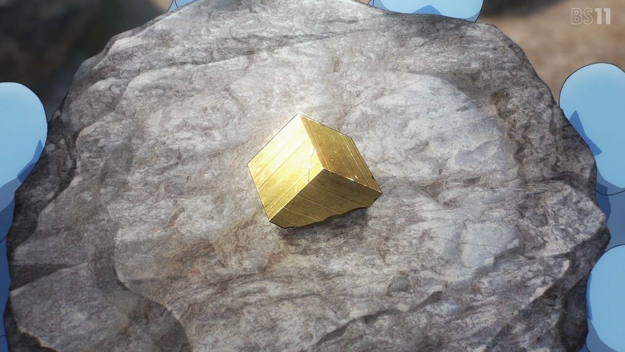 金(きん)を採集するために山にやってきたルリとナギ。岩の断面が金色に光っているのを見て興奮するルリだったが、ナギに金ではなく黄鉄鉱(おうてっこう)だと言われ意気消沈。しかし、珍しい形の黄鉄鉱を見つけたルリは、お金ではない価値を考えはじめる。それから2人は砂金採集のために川原へ向かうも、大雨が降ってきて採集中止のピンチに……。