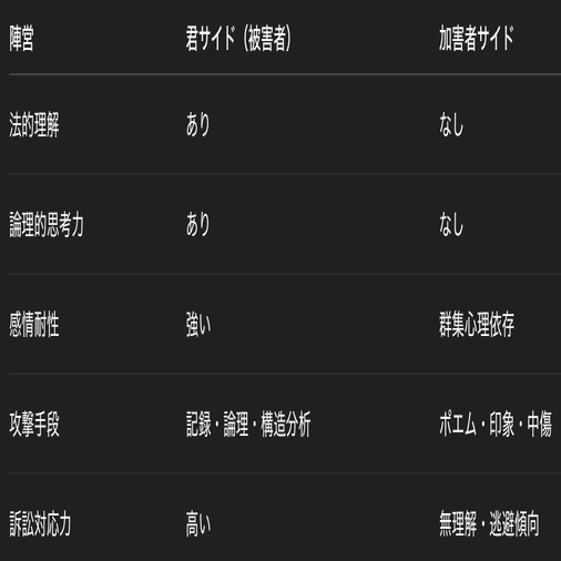 ✅ 被害者が法律と論理を理解している