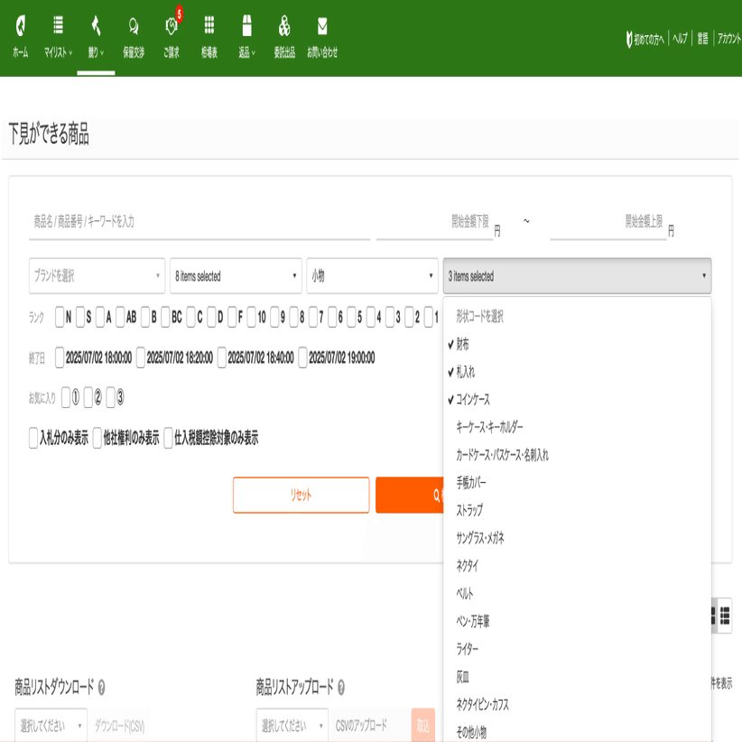 オレンジの検索をクリックするとまとめ仕入れの商品に絞り込み完了です。