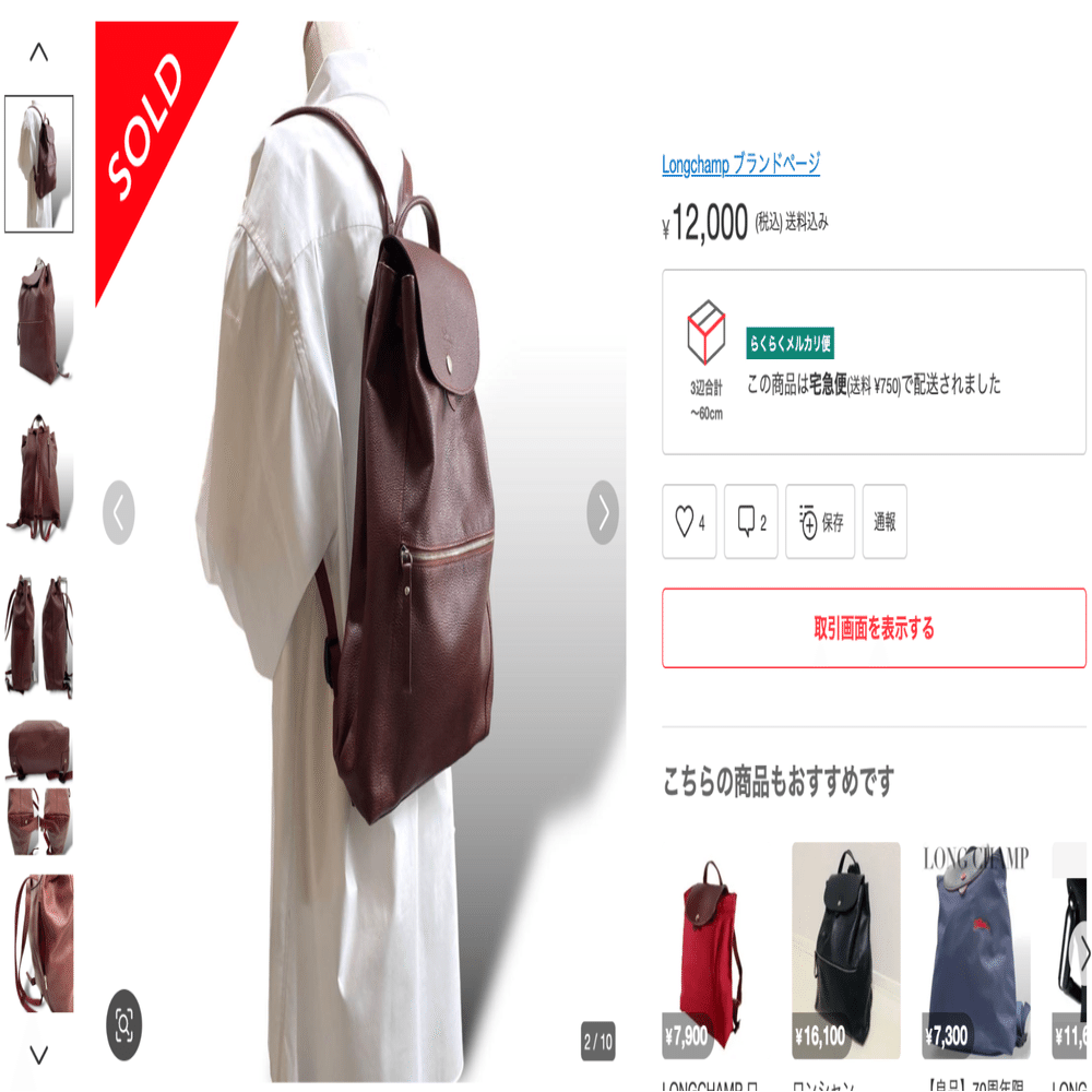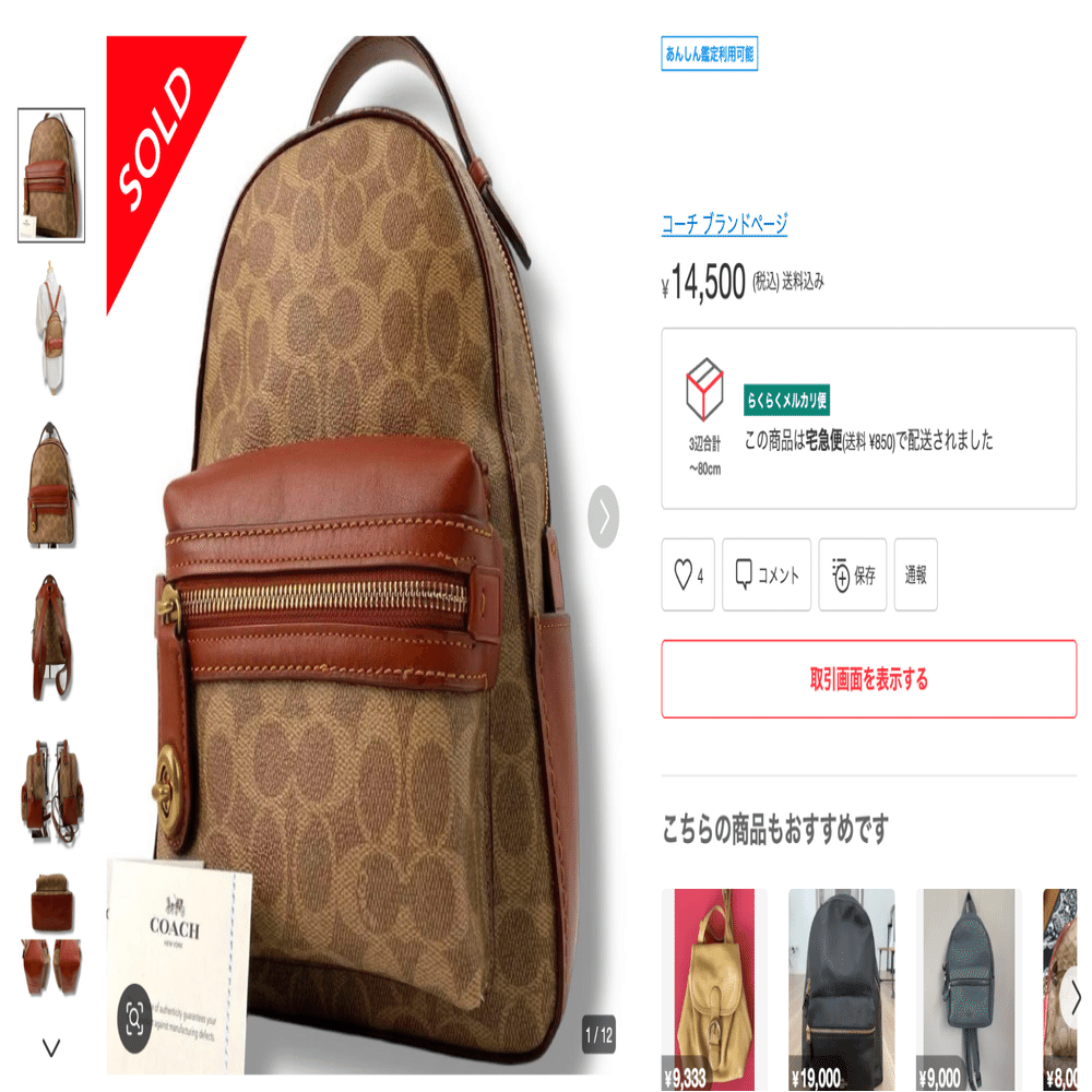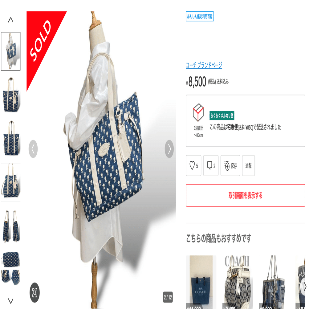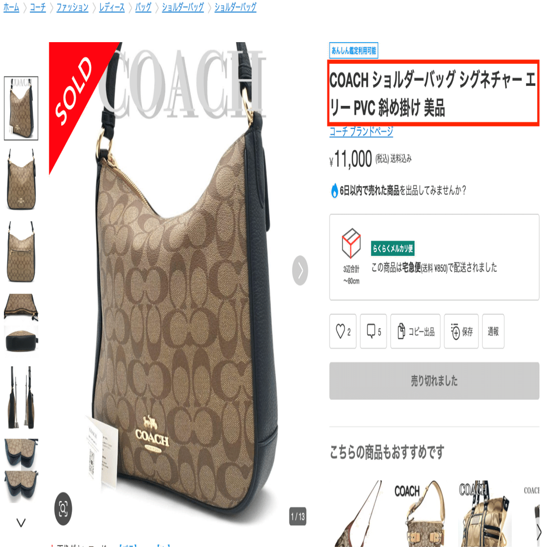 商品ページでブランド名、バッグ名称 、柄、モデル名、型番、素材が出てきたら