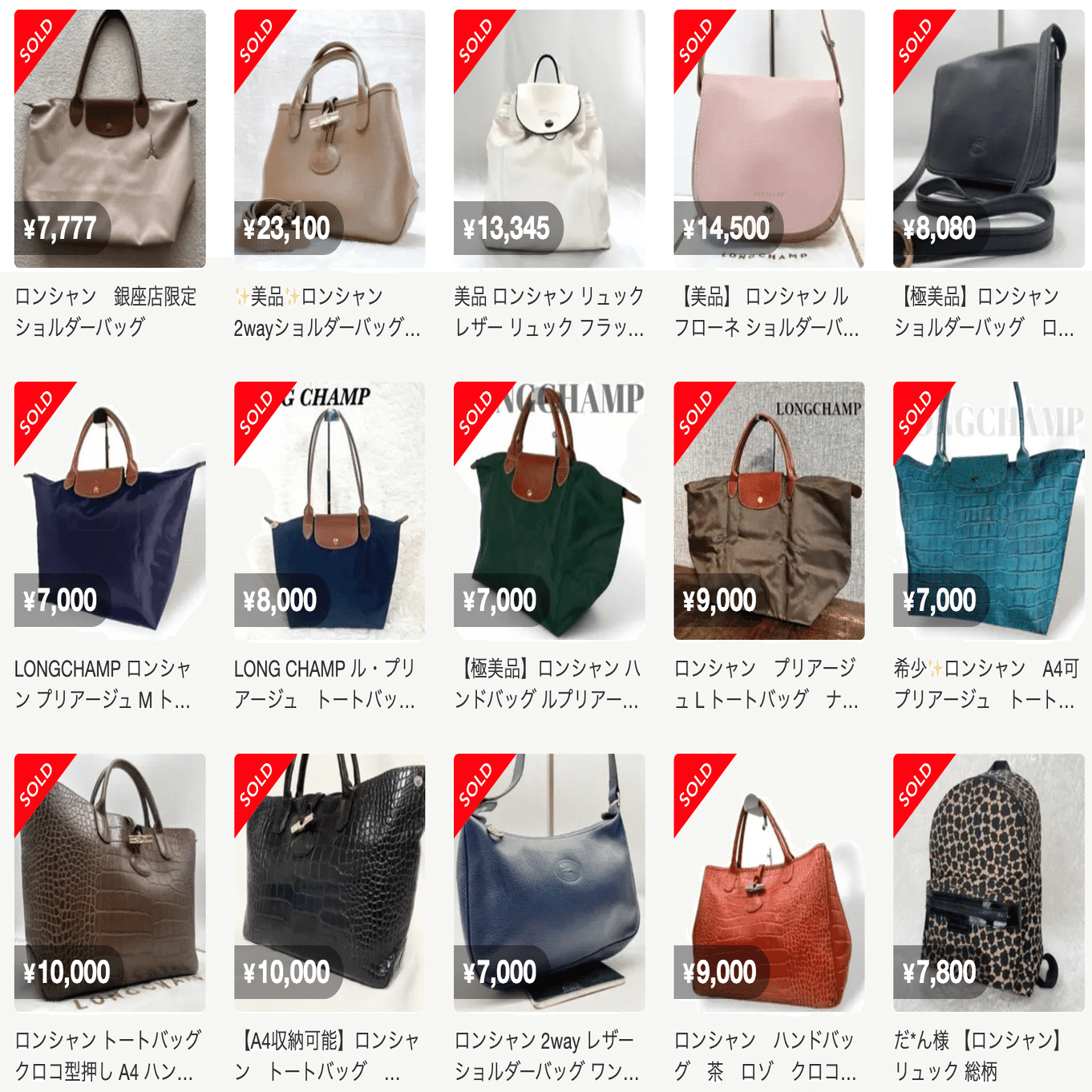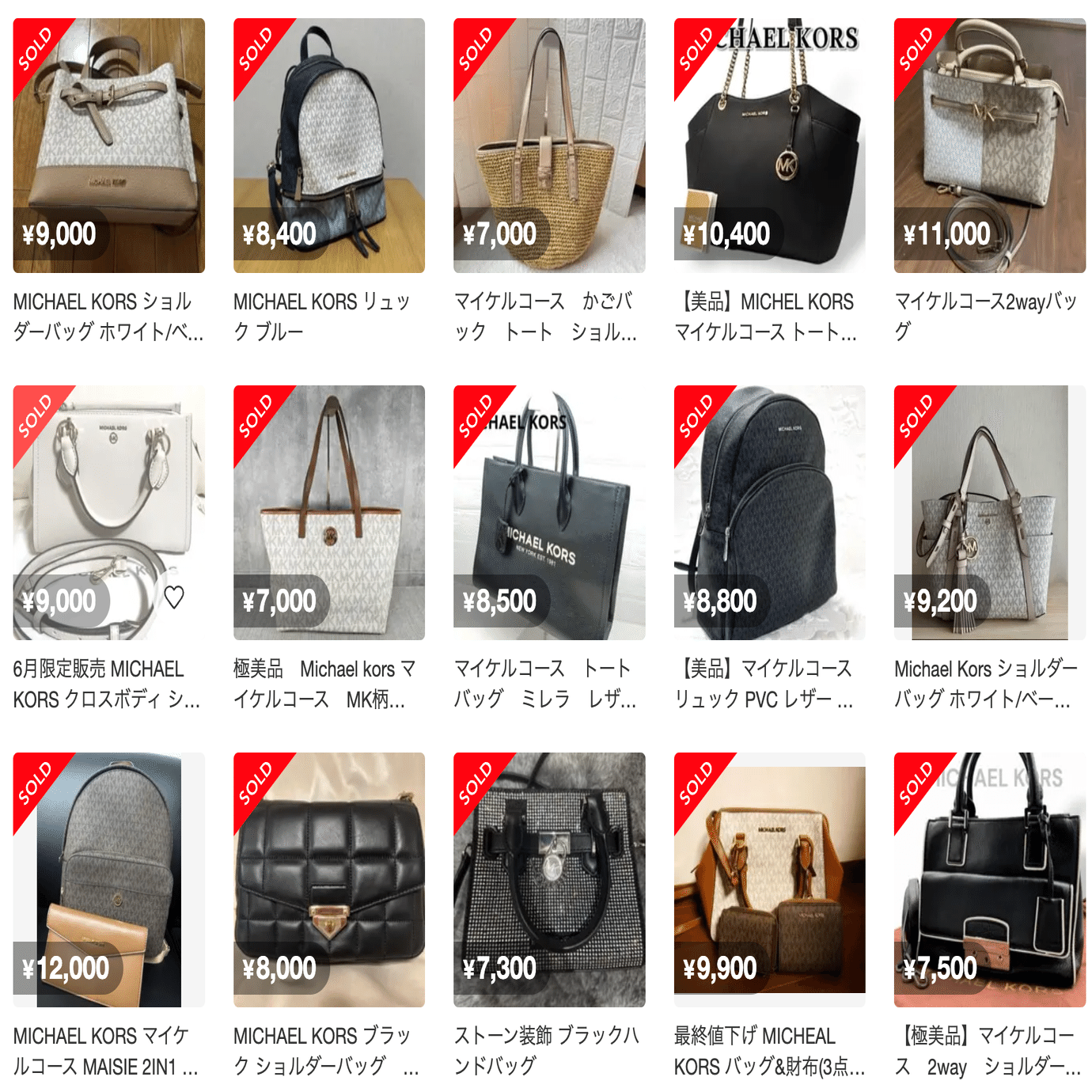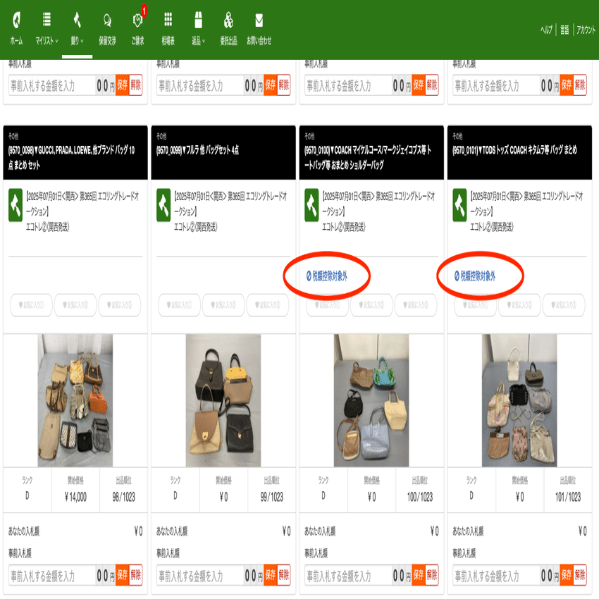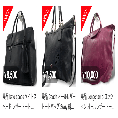まとめ仕入れでは複数のバッグが一緒に出品されているので、