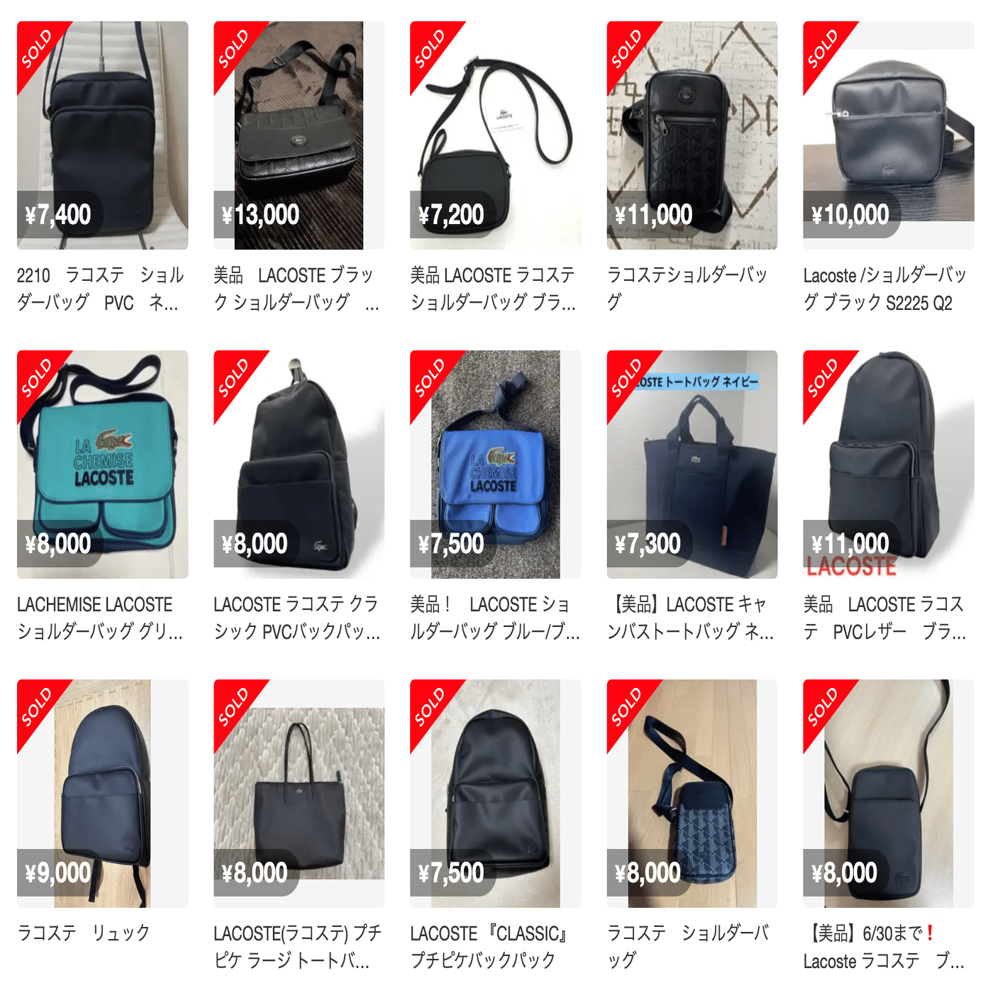 複数のバッグが重なった状態や写真に写っていない箇所もあるので