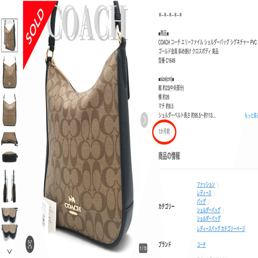 商品説明の下の方にいつ売れたかが記載されているので