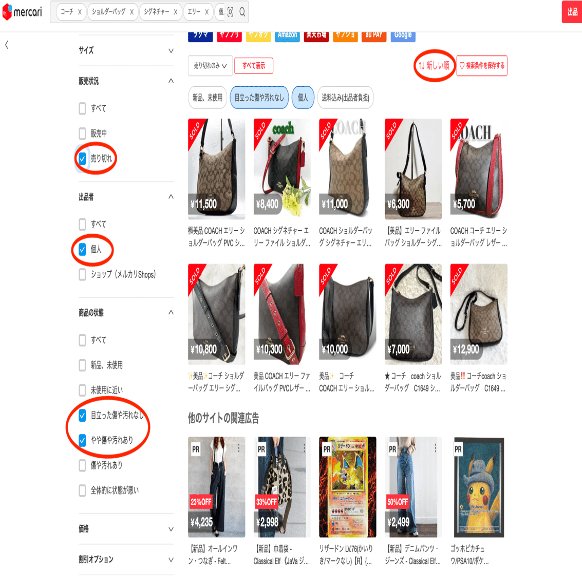 赤丸の同じ商品をクリックしてメルカリの商品ページを表示させてください。