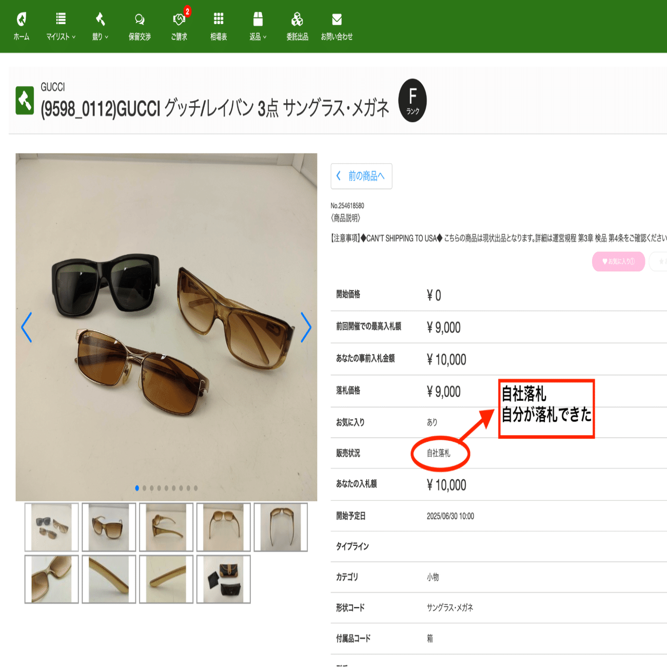 オークション翌日正午以降に