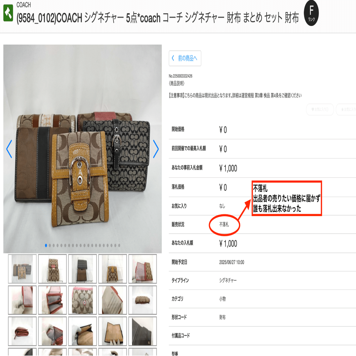 せどらーが不良在庫を出品している可能性が高いので初心者は基本入札しない。