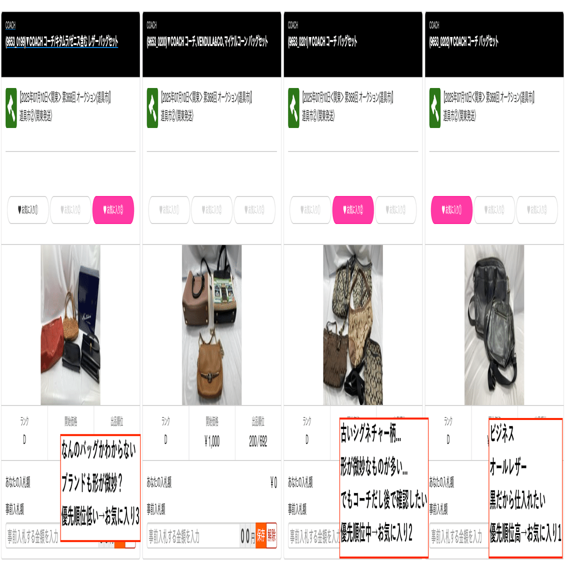 お気に入り2→時間があれば入札しようなど