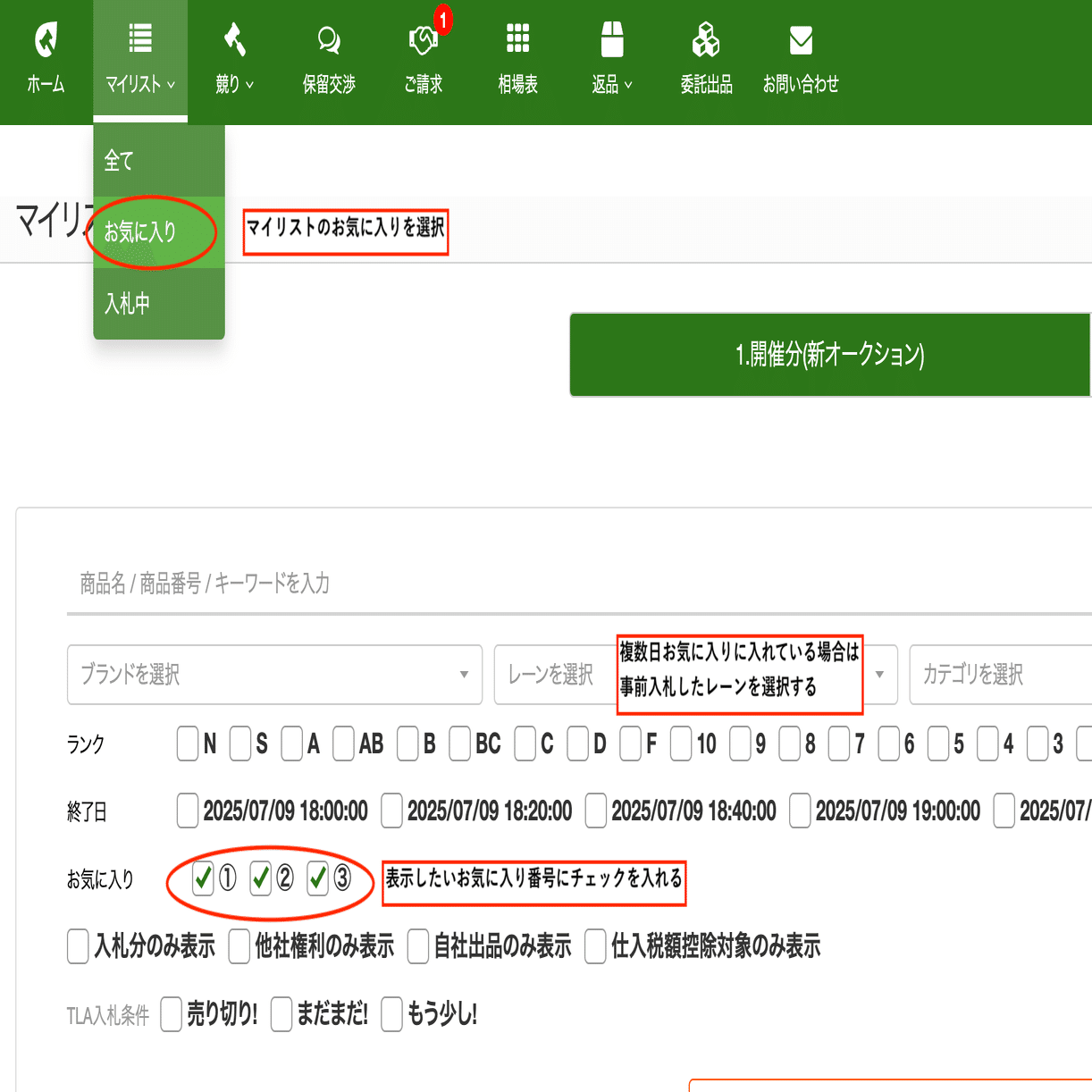 事前入札したいレーンを選択して絞り込みしてください。