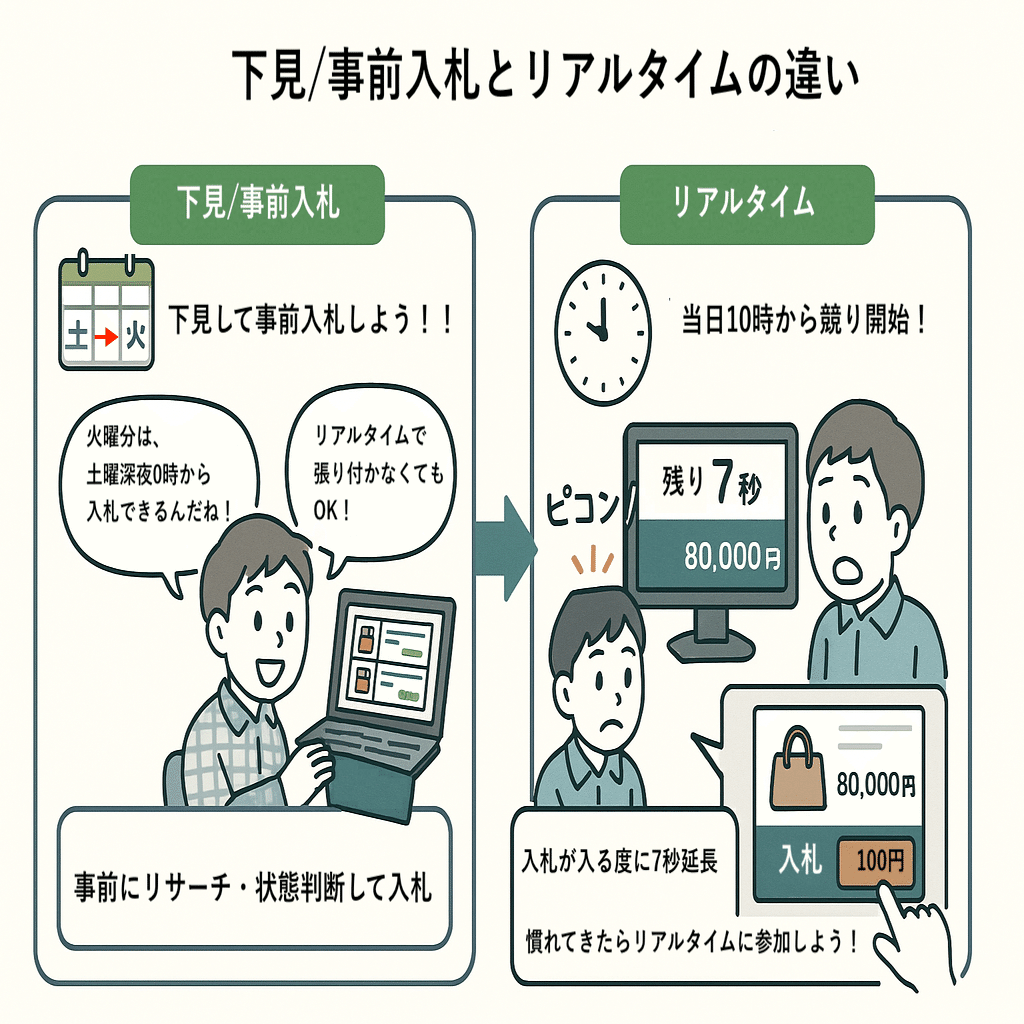事前入札をしてリアルタイムに参加せず仕入れが可能です。