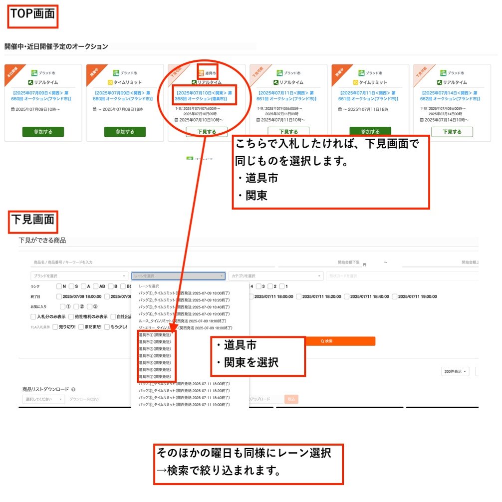 【レーンを選択】をクリックすると近々のオークションの項目が表示されるので