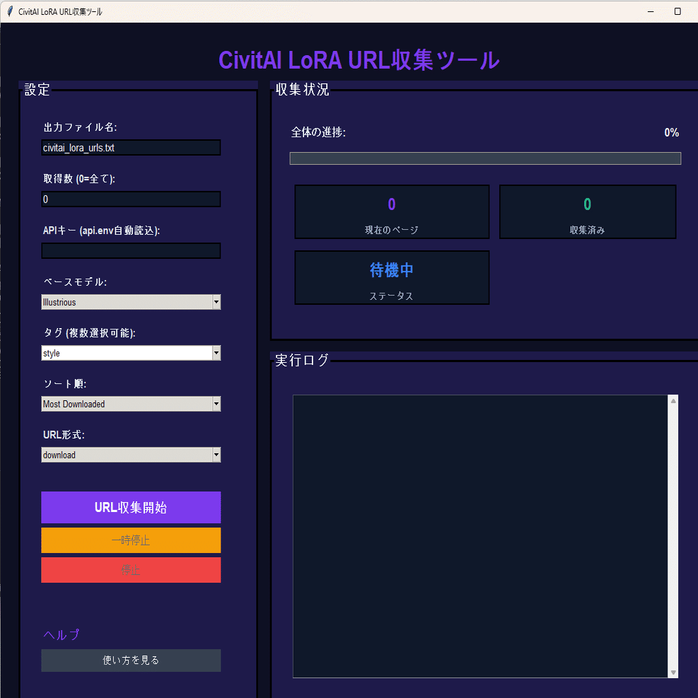 ツールは配布とタグ「nsfw」で取得したLoRA一括用ファイルを添付しています。