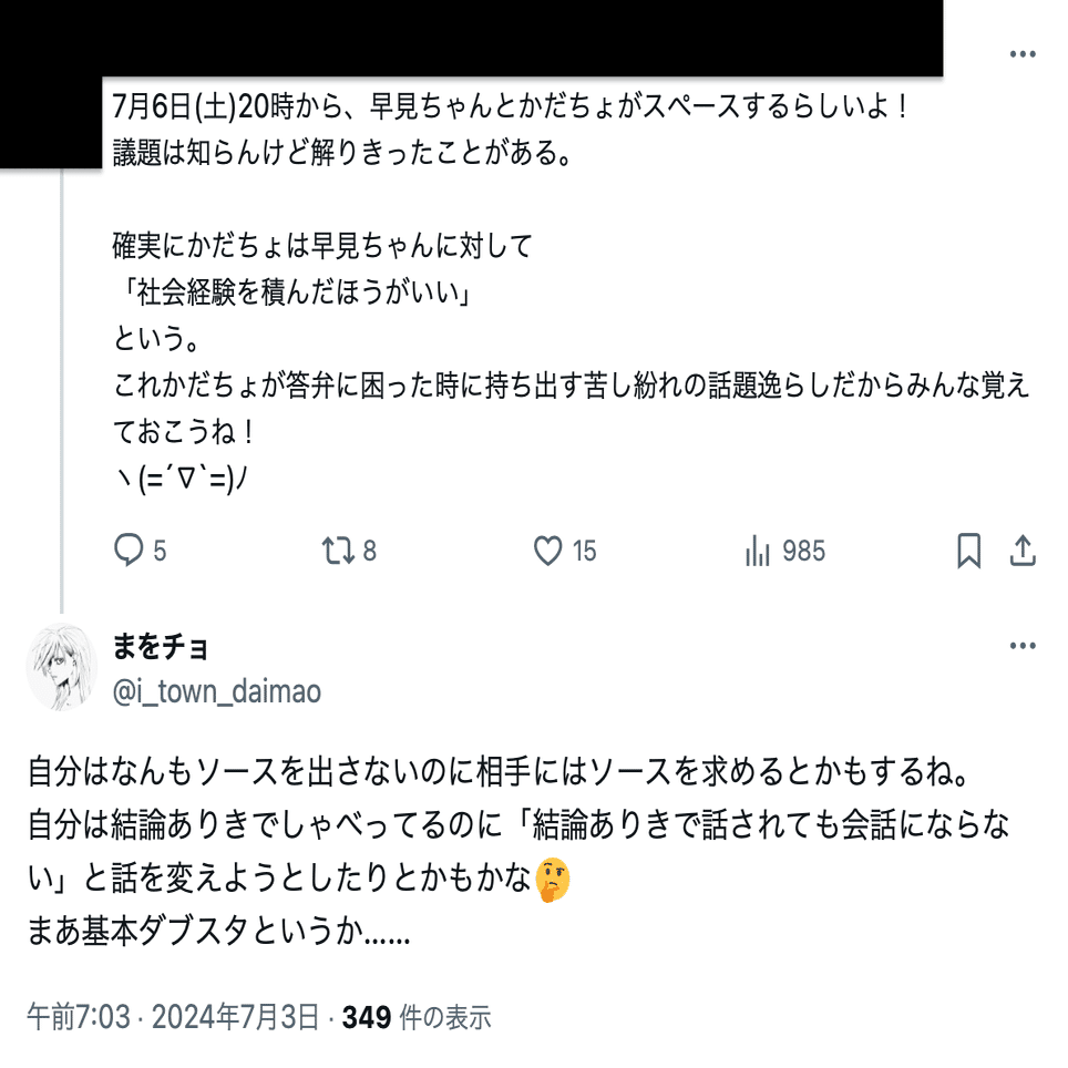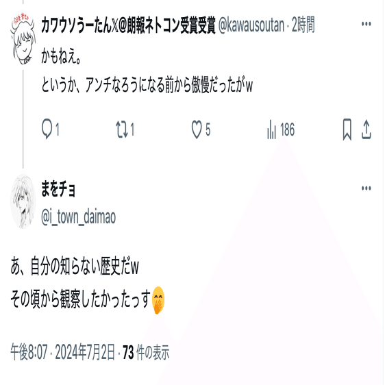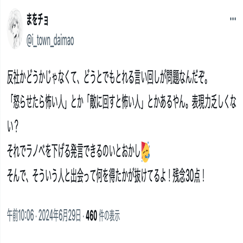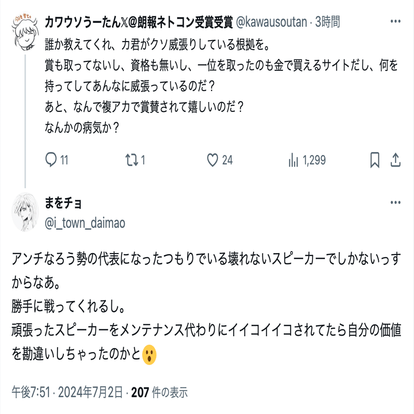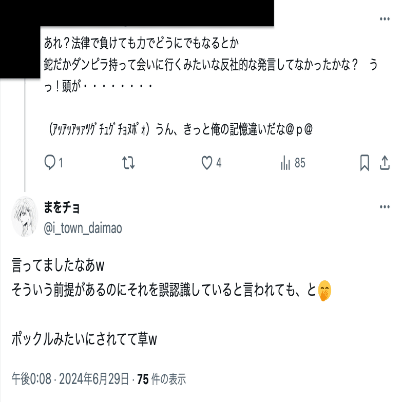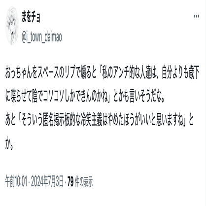 まを氏(@i_town_daimao)の誹謗中傷投稿は数が多いことから、分割して公開する。