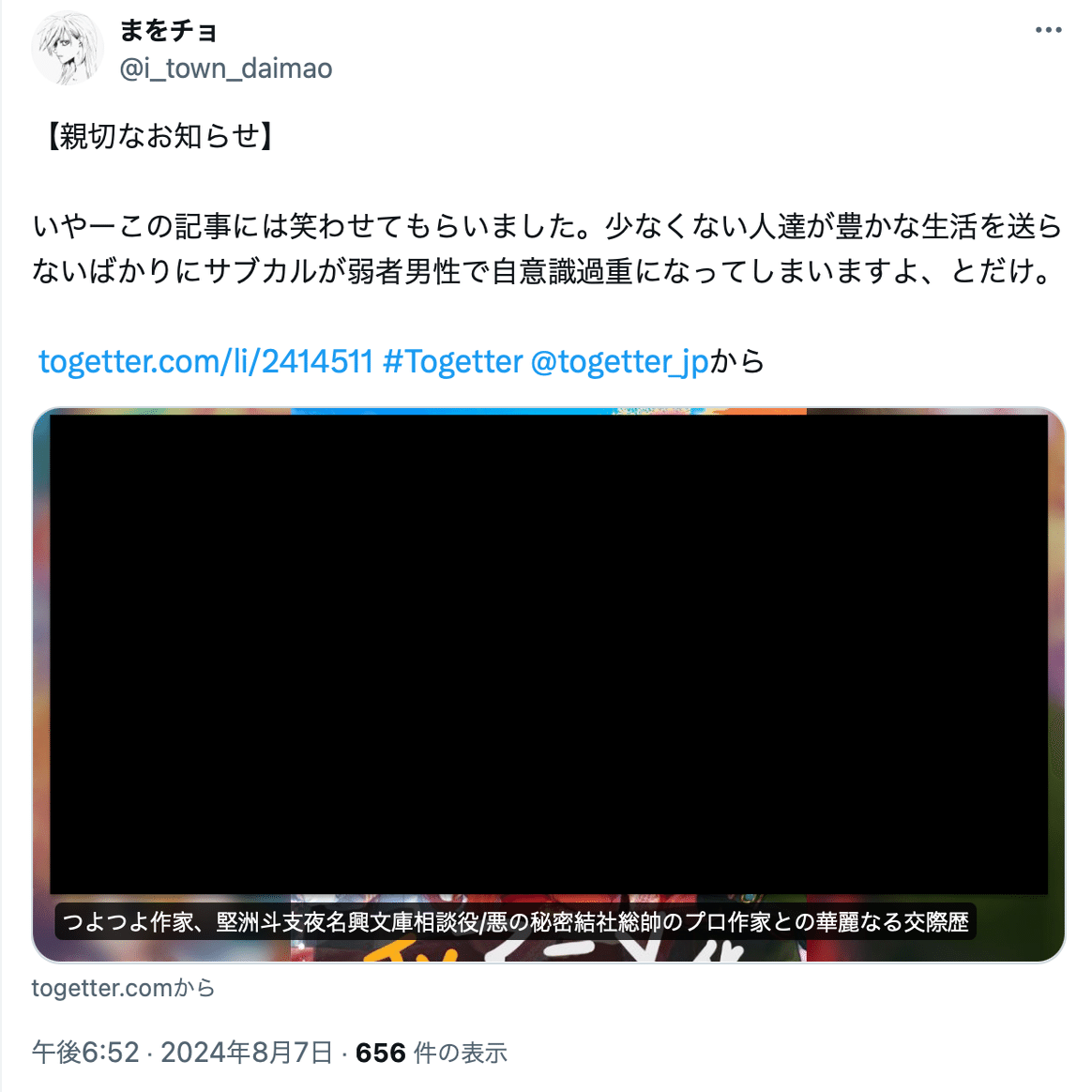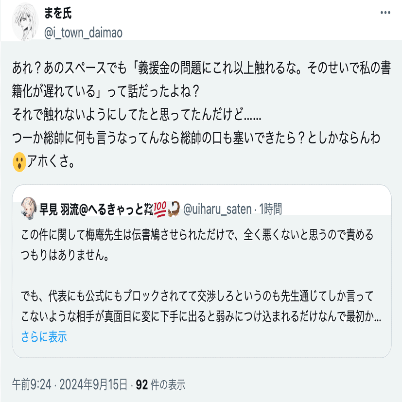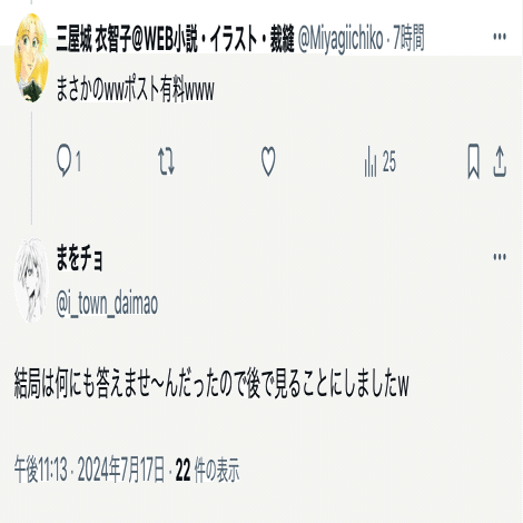 アカウントを復活させるつもりはないと思われるため、名興文庫が記録した投稿を公開し、情報提供を呼びかけると共に、名興文庫が問題視しているまを氏(@i_town_daimao)の投稿を公開し、名興文庫が受けている誹謗中傷の現状を可視化する。