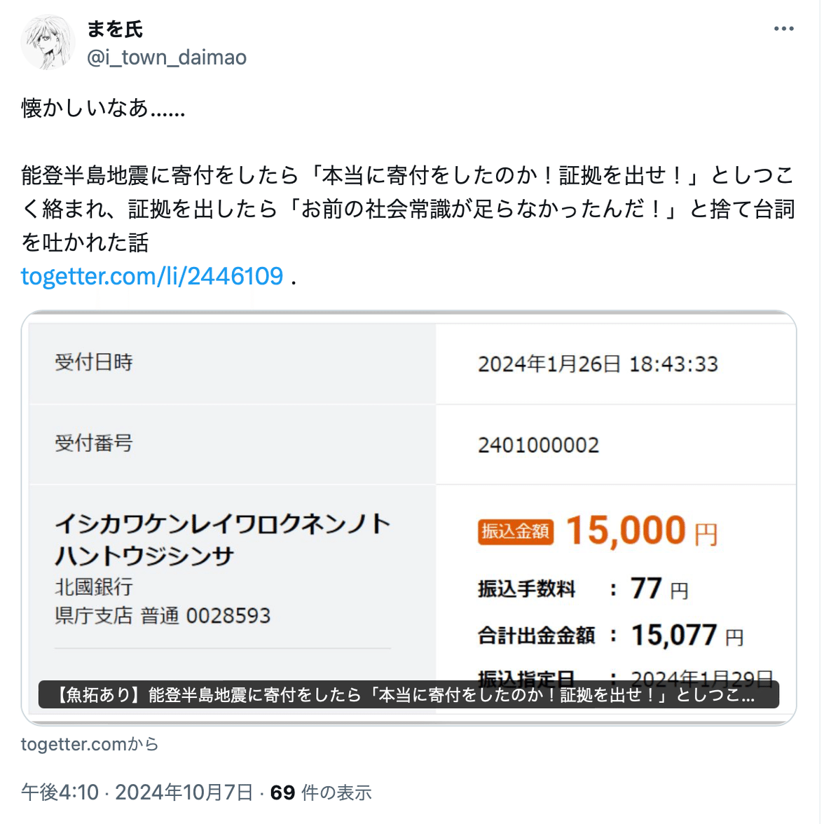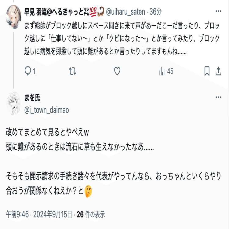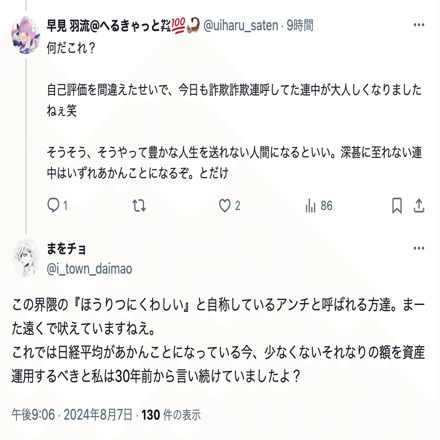 まを氏(@i_town_daimao)の誹謗中傷投稿は数が多いことから、分割して公開する。