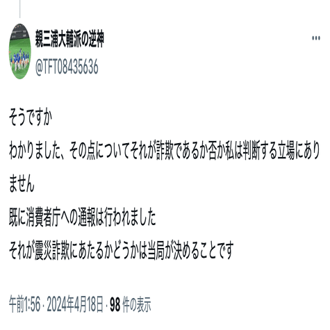 親三浦大輔派の逆神(@TFT08435636)は繰り返し、名興文庫を消費者庁へ通報するよう呼びかけた。