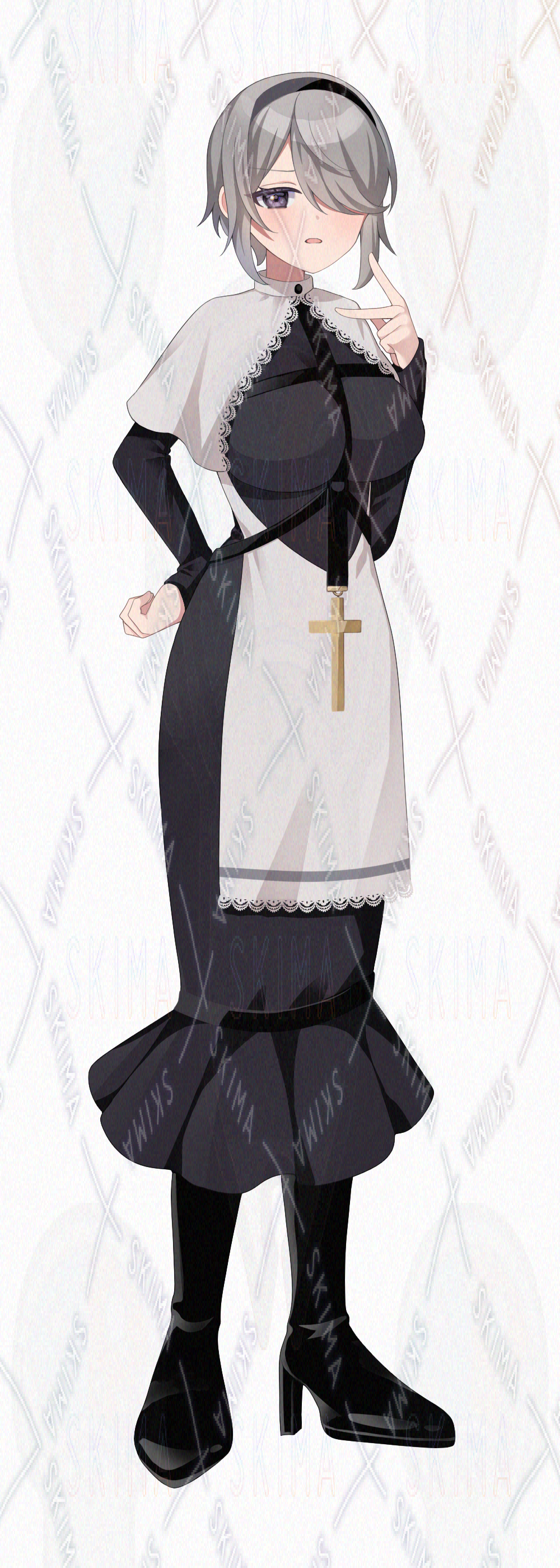【検索用】シスター/ショートカット/灰色/メカクレ/八重歯/十字架/ベルト