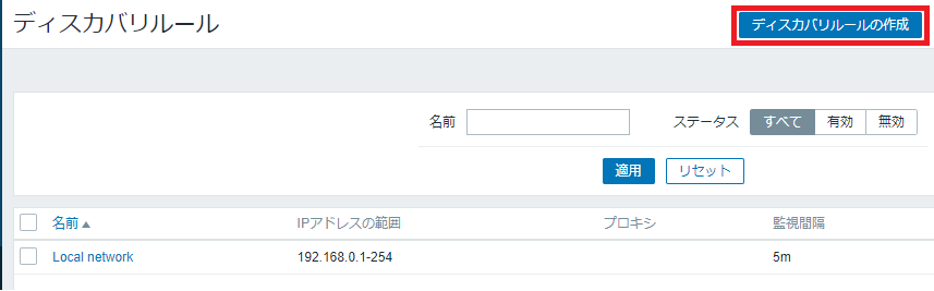 右上の「ディスカバリルールの作成」ボタンをクリックします。
