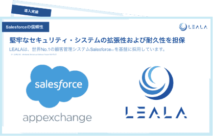 LEALAは、顧客・案件管理分野で世界シェアNo.1のクラウドプラットフォームSalesforceを基盤とした