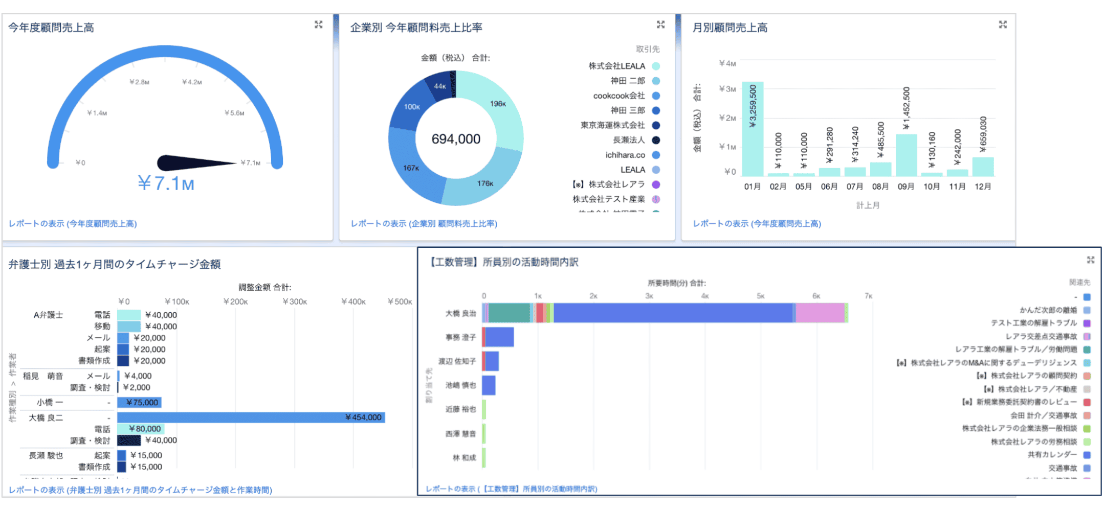 弁護士毎の稼働業務量を可視化