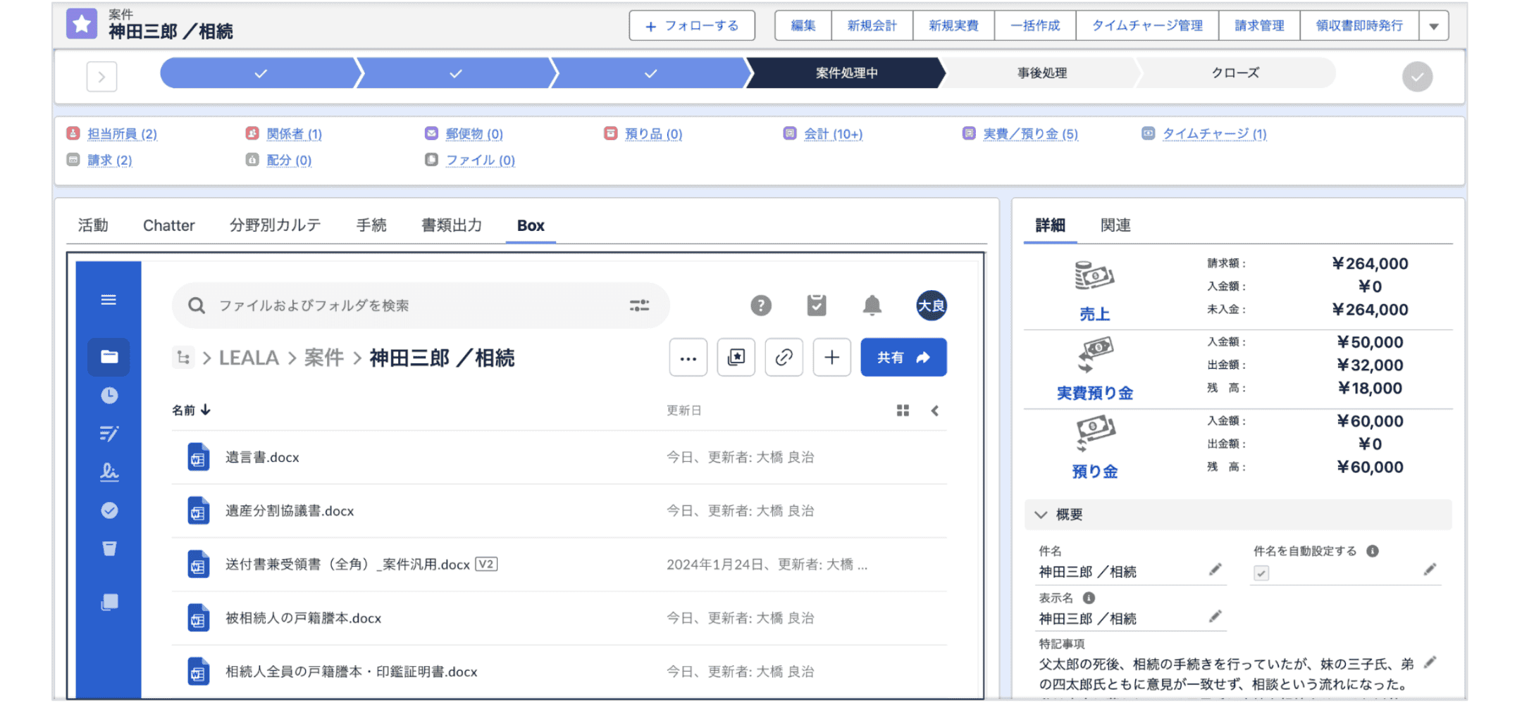 - - 案件情報および進捗管理