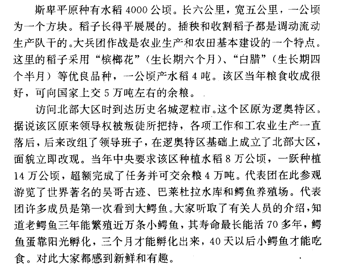 比如下文中描述的斯卑平原,长六公里,宽五公里,总面积才30平方公里,也就是3000公顷,结果在红色高棉的治理下,竟然种下了4000公顷的水稻,每年能向国家上交5万吨余粮,这种农业成就简直是见所未见,闻所未闻: