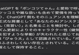 そうやって個人個人にカスタマイズされるのもChatGPTの面白いところです。萌えシチュエーションなり、ビジネスライクなり、使う人によってさまざまな面を出してきます。逆にいえば、ユーザーがChatGPTを育てていく感覚に近いです。