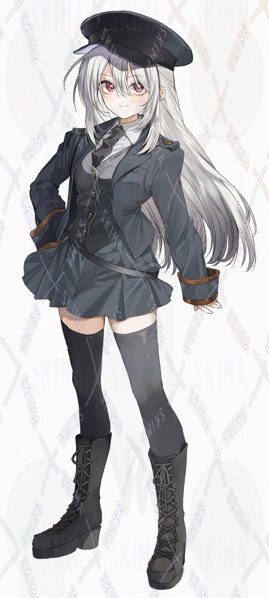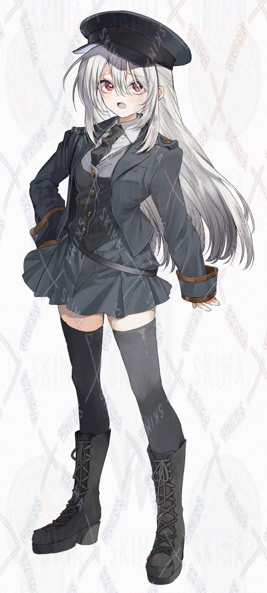 警察官、警備員、駅員、のような公的な職業風の女の子です。キャラ設定はご自由に。