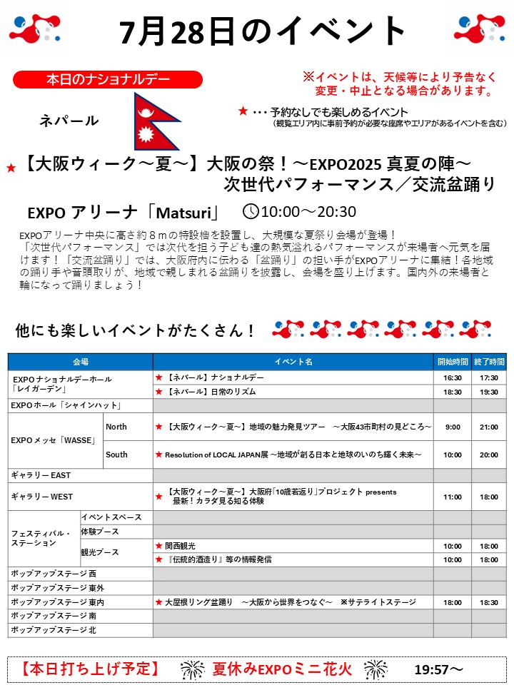 7月28日(月)の万博情報です
