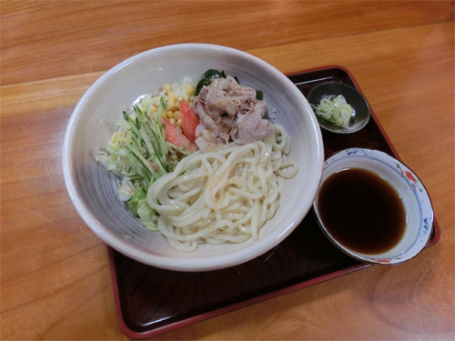 こちらは、大皿にたっぷりのサラダと国産豚を使用した「とんしゃぶサラダうどん(1,100円)」。
