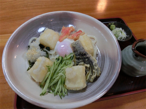 温泉卵やおろし大根、わかめなども入っていますので、大皿の中で、まぜて食べればいろいろな味が楽しめます。