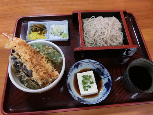 こちらの写真は「天丼セット/ざるそばorうどん(900円)」になります。
