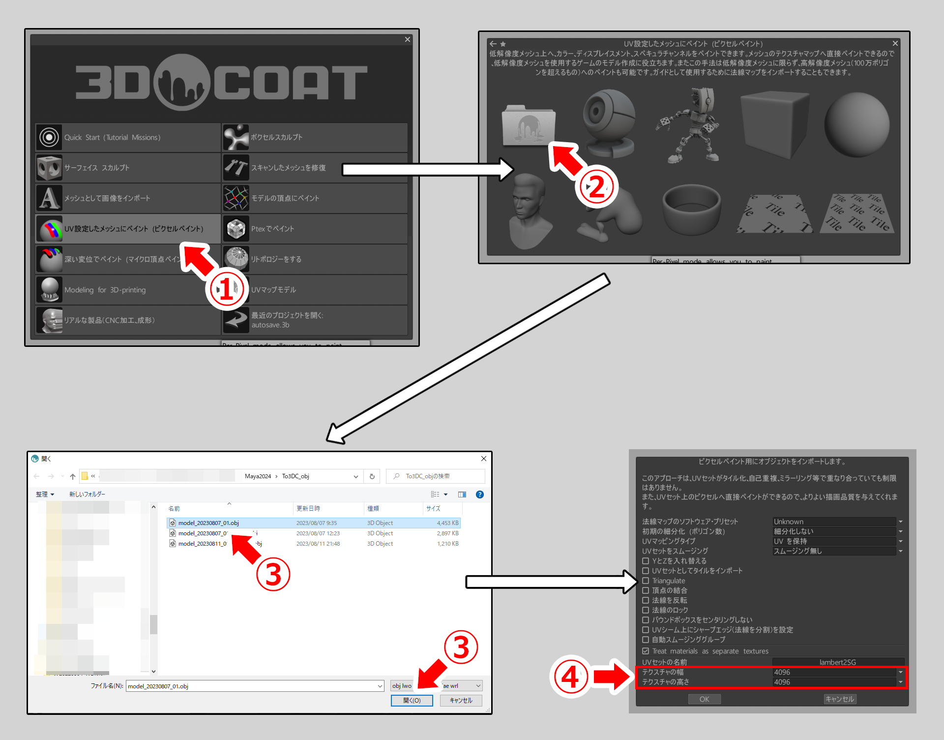 >書き出したobjを選択して開く【下図③↓】