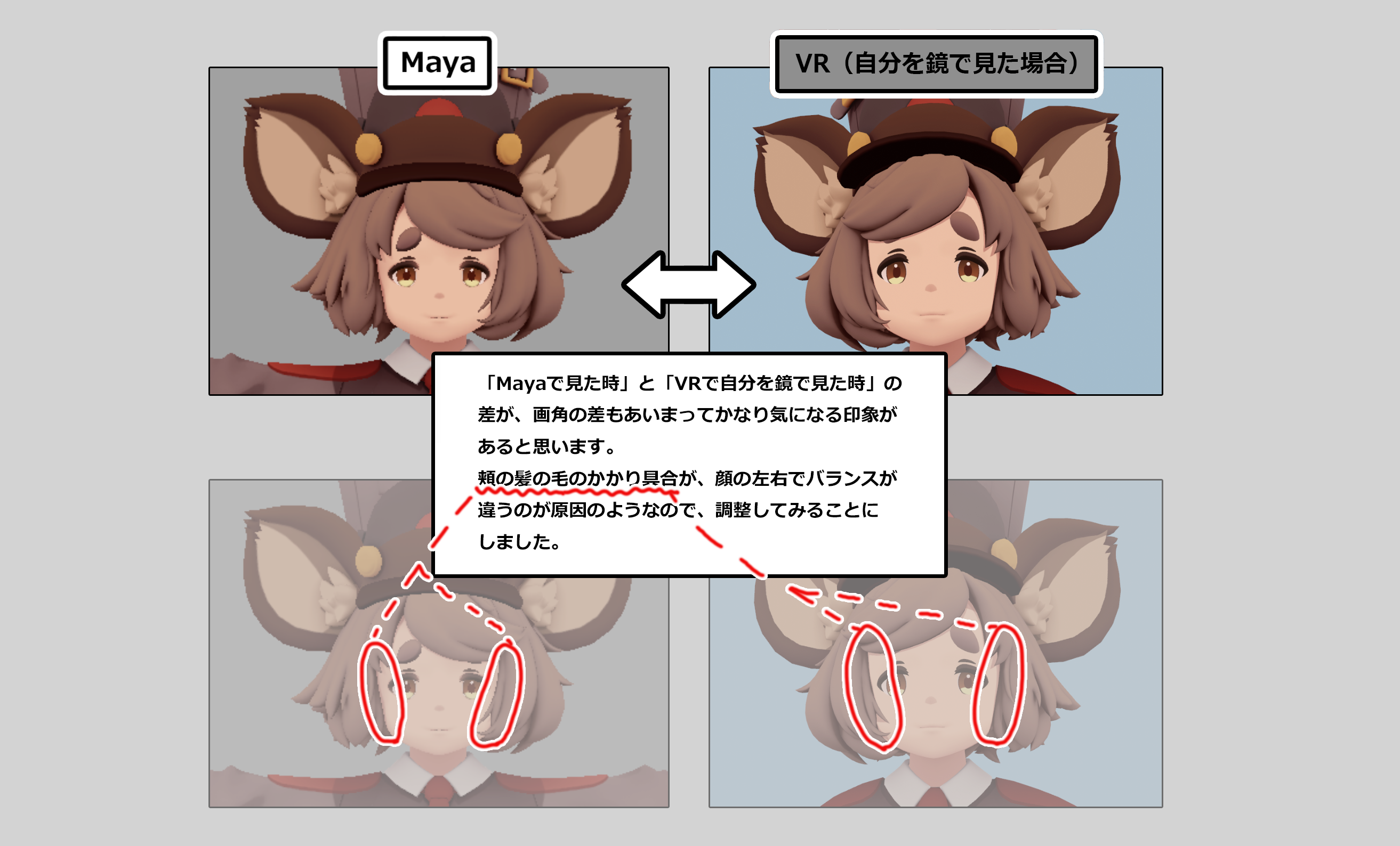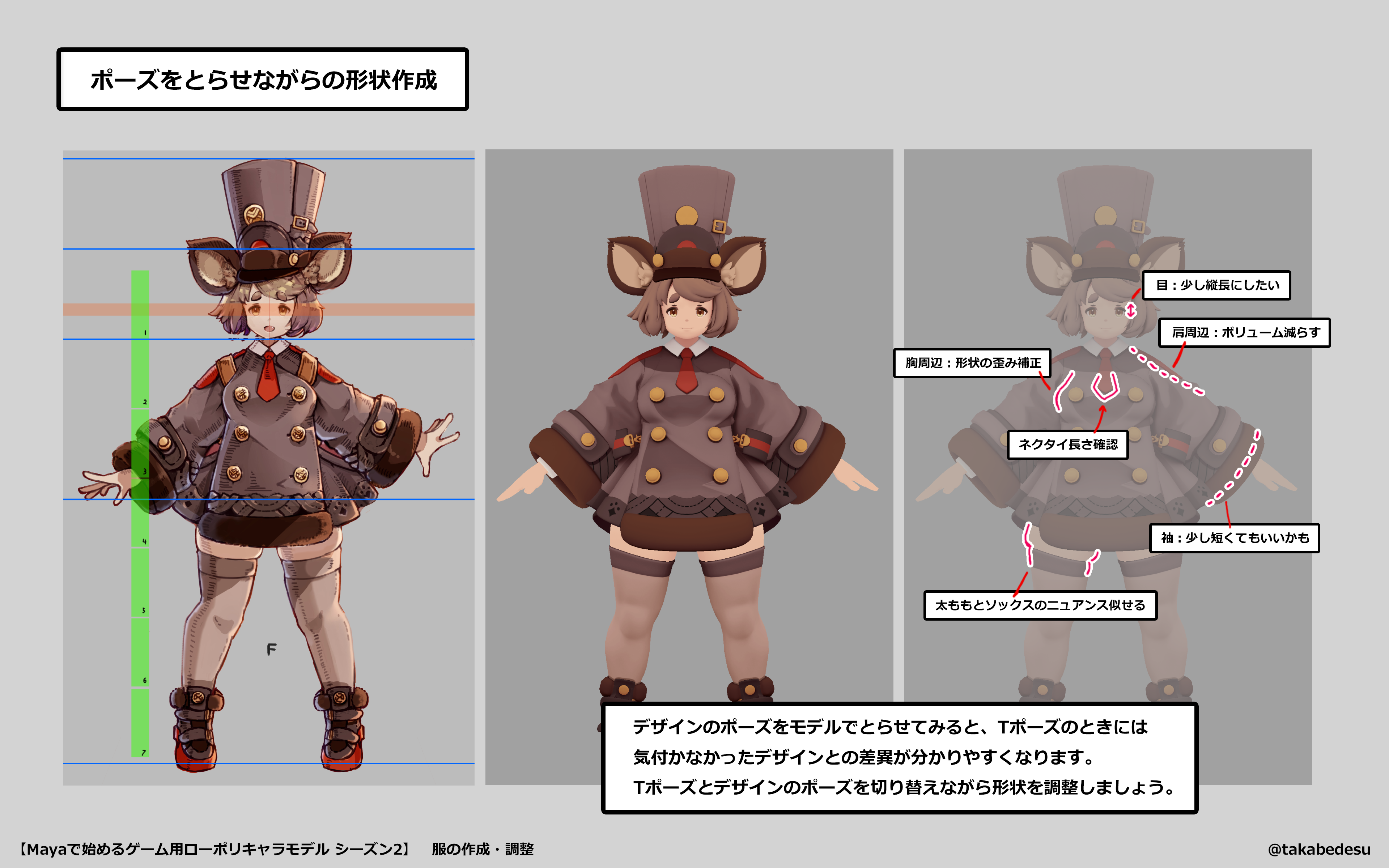 ちなみに、Mayaのコラムではこんな感じのモデル【下図↓】を作っています。2023年8月の時点で、形状はある程度できましたがテクスチャはラフなので、今後のコラムでしっかりと絵作りのコツを紹介します。VRChatを想定したモデルとなっているため、実機となるVRChatの調整も楽しく紹介しています!