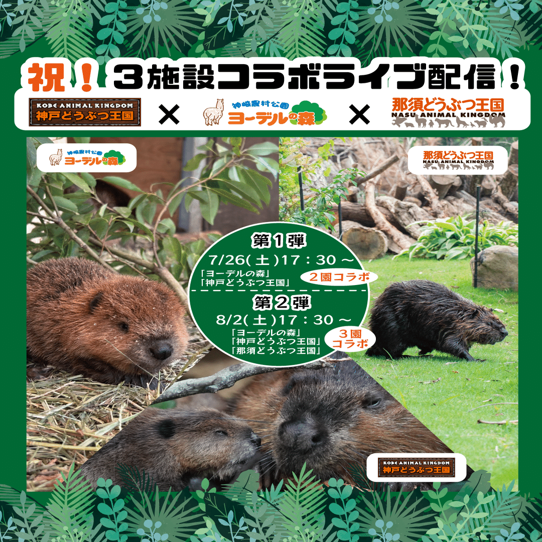 この度、那須どうぶつ王国・神戸どうぶつ王国・ヨーデルの森の3施設でアメリカビーバーのコラボインスタライブ配信を行います!