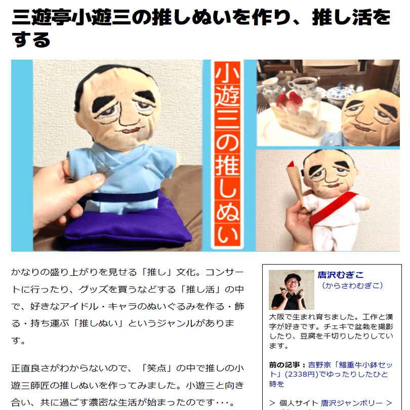 でも、趣味はちょっとレトロ。落語家・三遊亭小遊三さん(77)の“推しぬい”を作ったり、「冬のソナタ」のパチンコプレートを持っていたり、電気グルーヴや軍人将棋が好きだったり。平成9年生まれなのに、昭和生まれと話が合います。