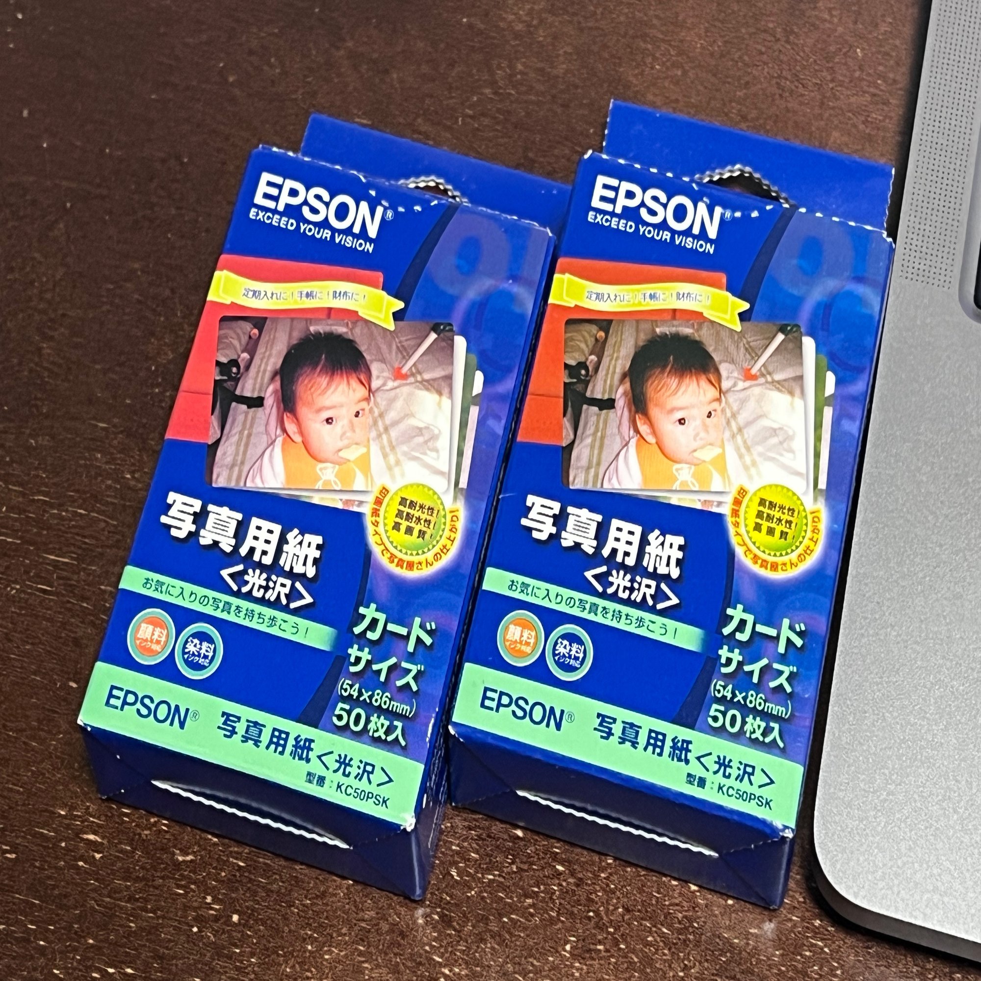 調べてみると「Sサイズ」はなかったが、「カードサイズ」という小さな用紙があることがわかった。「Lサイズ」の半分くらい。チェキと同じサイズである。半分なら、3000枚貼れる!