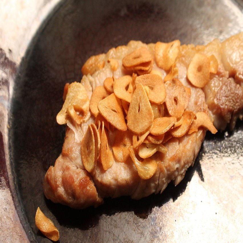 リブ側の肉を焼いたときのことは別のnoteに書いています。ガーリックチップスの作り方も紹介しているので、参考にしてください。