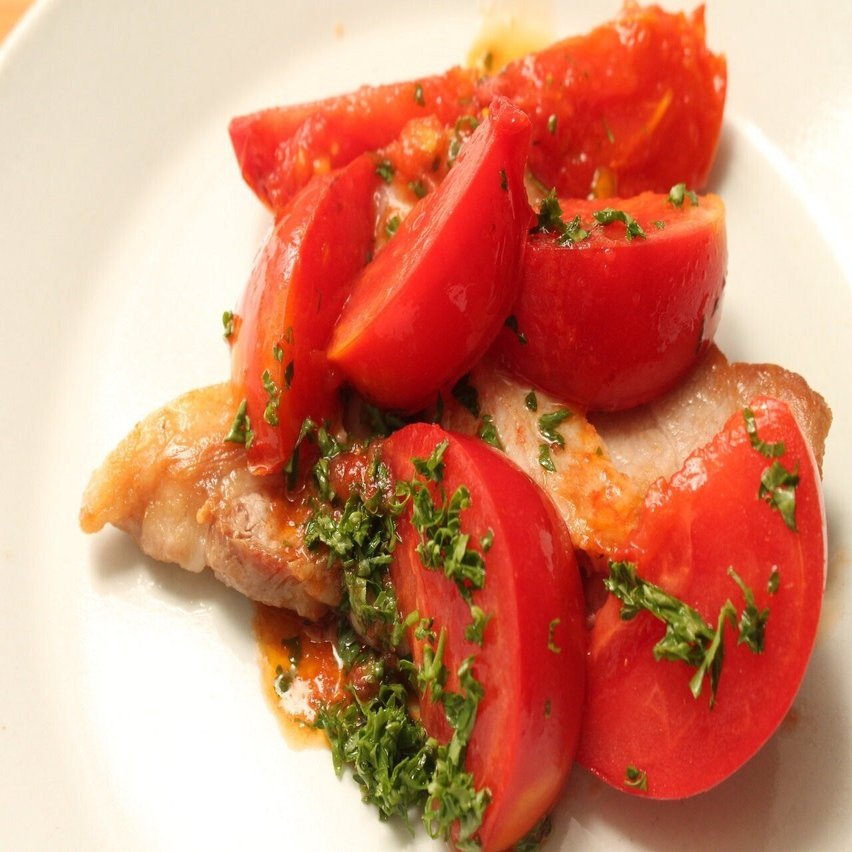 肉の塩気を和らげるフレッシュトマトソース