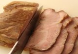 今日は包丁で適当な大きさに切り分けました。食べる人が切る形でもいいのですが、豚肉は牛肉と違って肉汁が流れやすいので、包丁で切ってしまったほうが、おいしく食べられると思います。もちろん、よく切れる包丁を使うのがベター。