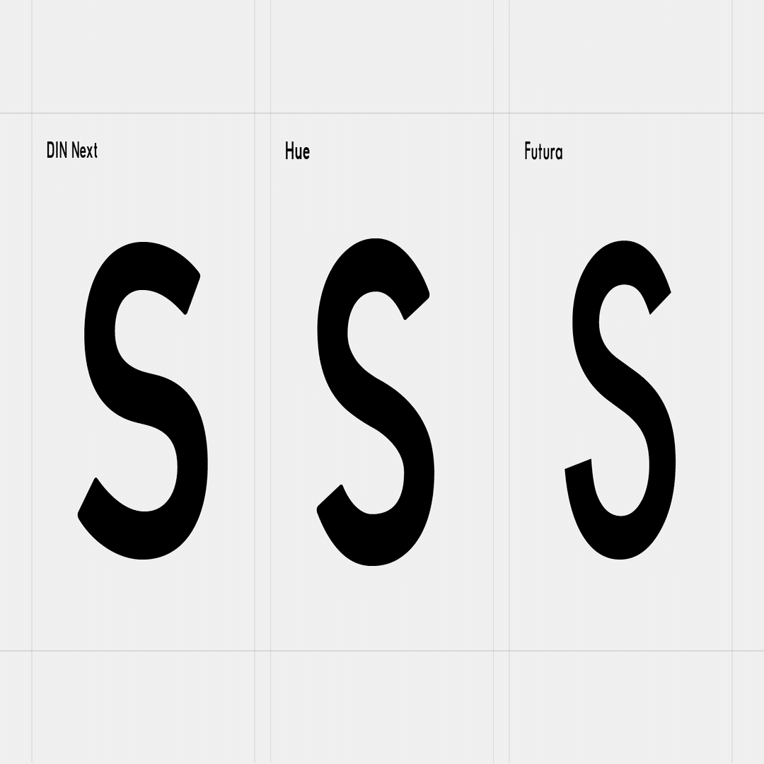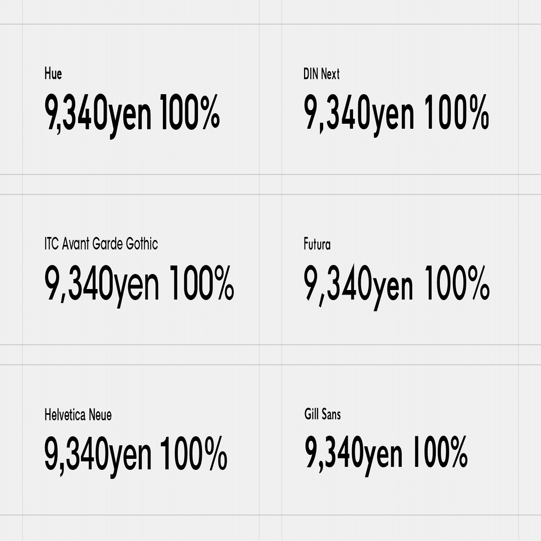 DINやFuturaなどと比較してよりジオメトリックな印象になるようにしています。