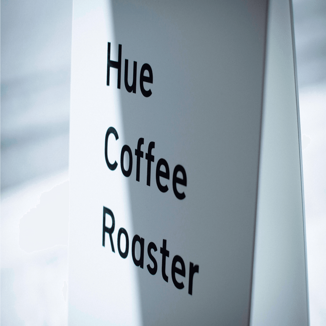 お店の名前は「Hue Coffee Roaster」といいます。「Hue」(ヒュー)は色相や色味という意味の英語で、コーヒーのメニュー名を産地や豆の品種、焙煎度合などではなく、「色」の名前で表現することでより気軽にさまざまなコーヒーを楽しんでいただくことをコンセプトとしています。
