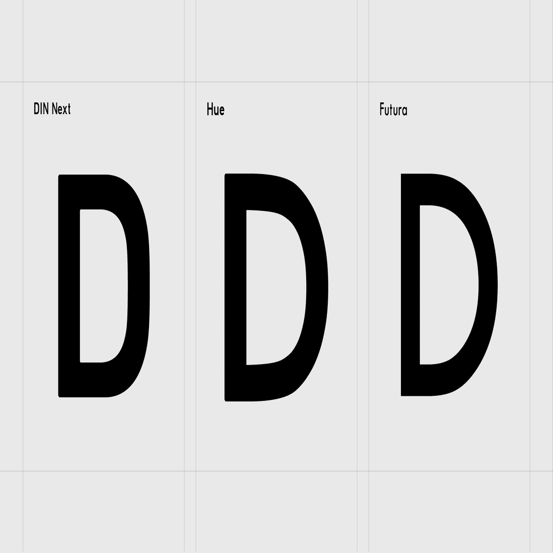 完全にゼロから作った書体ですが、字体から受ける印象はDINの持つ雰囲気に近く、シンプルで幾何学的な印象を持たせながら、ヒューマニストサンセリフのようにローマン体のプロポーションに近づけています。