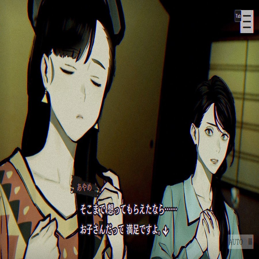 また、あやめは選択肢によってはこの場面で春恵を呪殺するのですが、この展開で呪殺に誘導せず説得してあやめから呪詛珠を譲り受ける方法で決着をつけたのは、警察の家族に振り回された春恵の過去に共感し同情した気持ちが上辺だけではなく本心にもあったからではないかと思います。