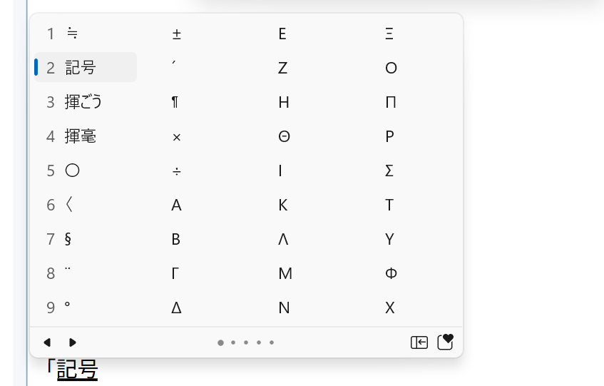 「きごう」と打って、ひたすら予測変換の中から調べます。(今回は最近調べたので頭に来ちゃってますが)