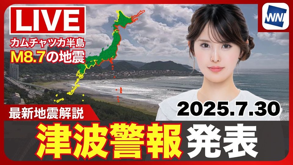 お天気ニュース お天気ニュースをもっと読む 【津波警報】北日本の太平洋沿岸に発表 安全な場所で避難の継続を (18時44分現在)2025.07.30 19:00今後の暑さは台風が左右 関東は落ち着く一方、東海以西は猛暑継続2025.07.30 17:56明日7月31日(木)の熱中症警戒アラート 大阪など31地域に発表2025.07.30 17:08 お天気ニュースをもっと読む