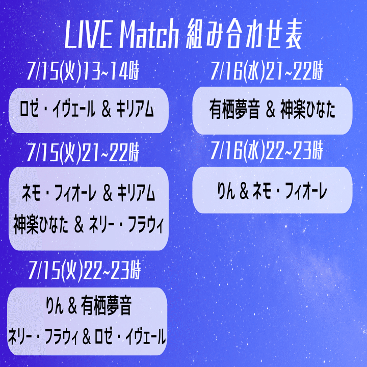 【ライブコスモ】第4回「ライブコスモ限定🪐LIVE Match交流会🥊」組み合わせ発表🎉