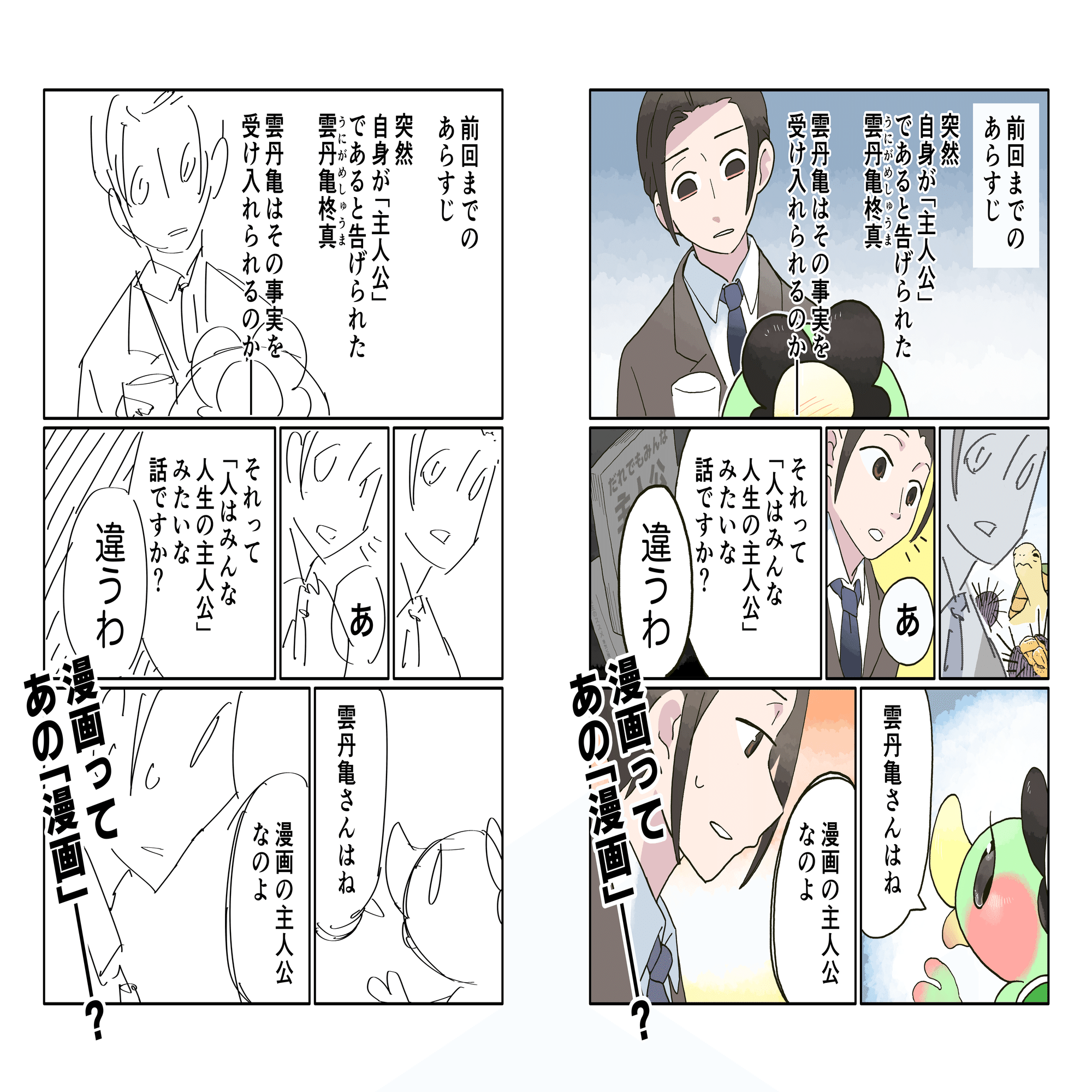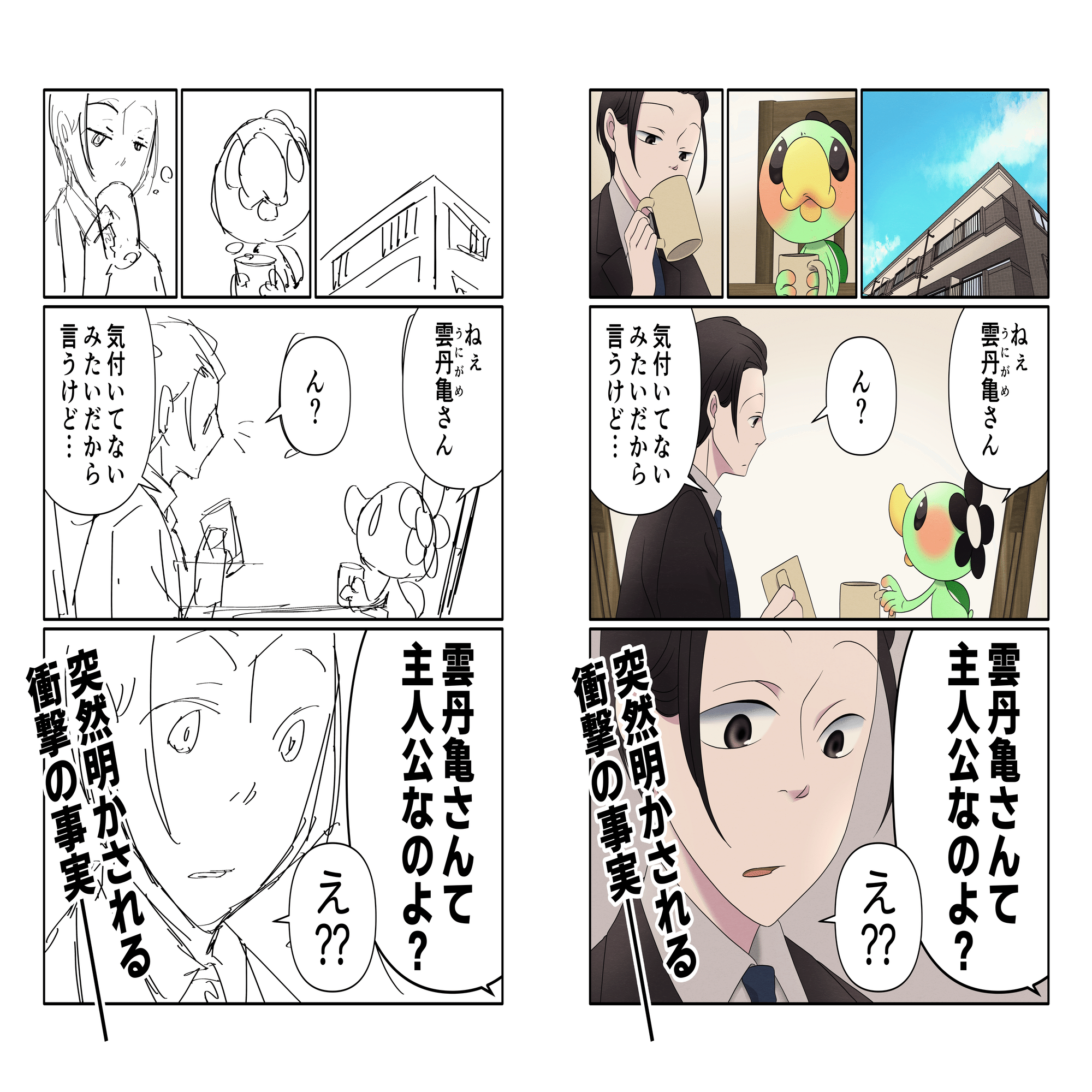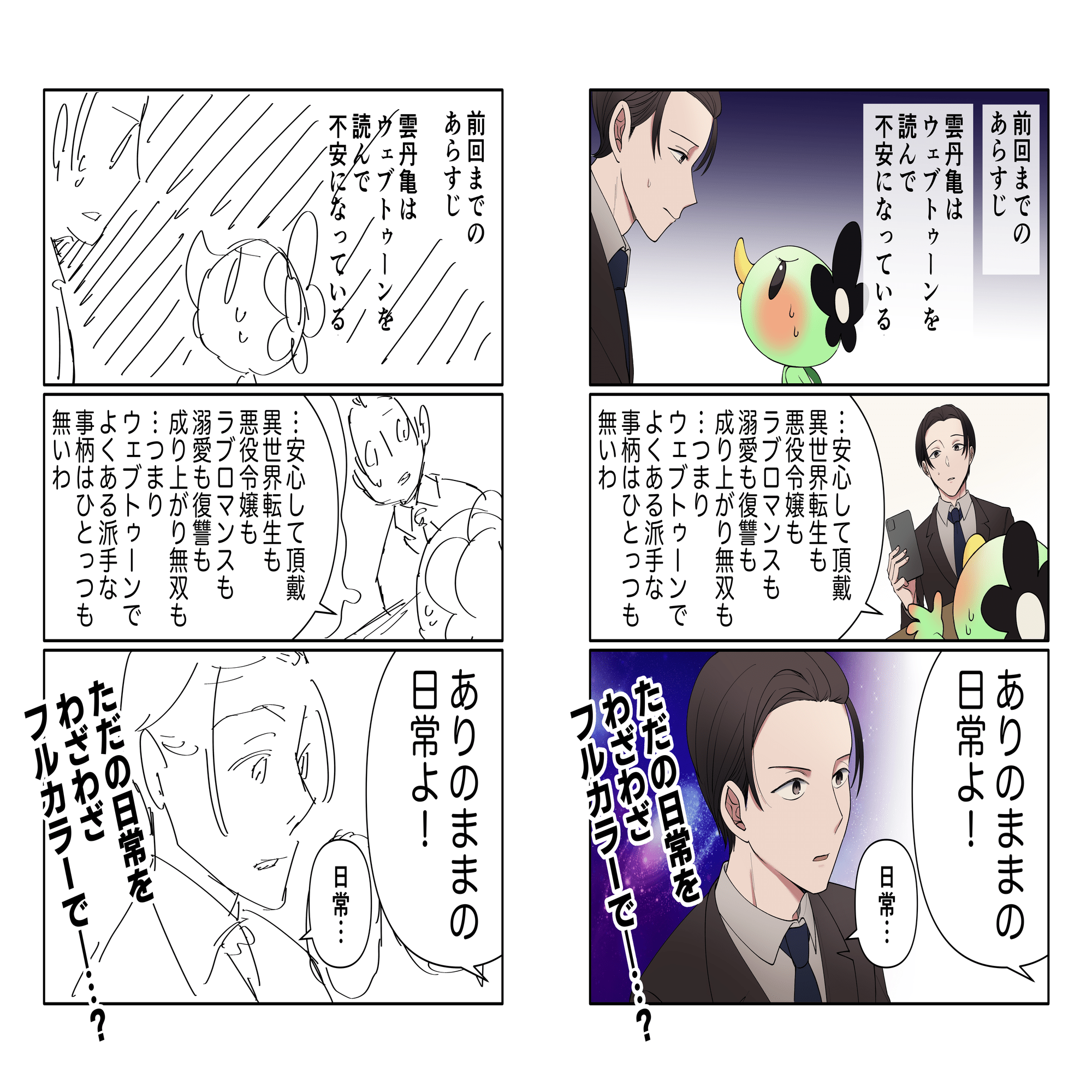 「テキストに変更がなければコマ割りは変えてもいい」という依頼内容だったこともあり、微妙にコマ割りが変わっていたりして、すごく面白かったです。連載前でちょっとピリついた精神に人様の描いてくださった原稿が染み渡った…。